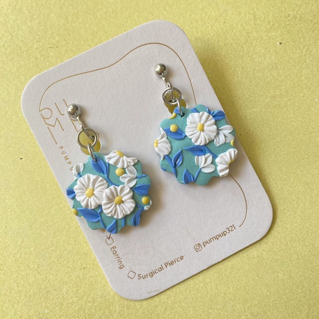 BAKEミニフラワー4種セット 樹脂イヤリング(白・水色・ブルー・黄緑