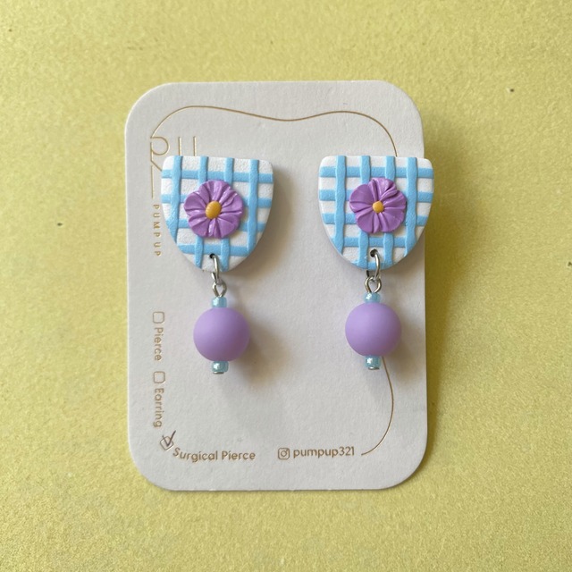 BAKE扇型 ピアス/イヤリング(白・水色・紫 ワッフルチェック