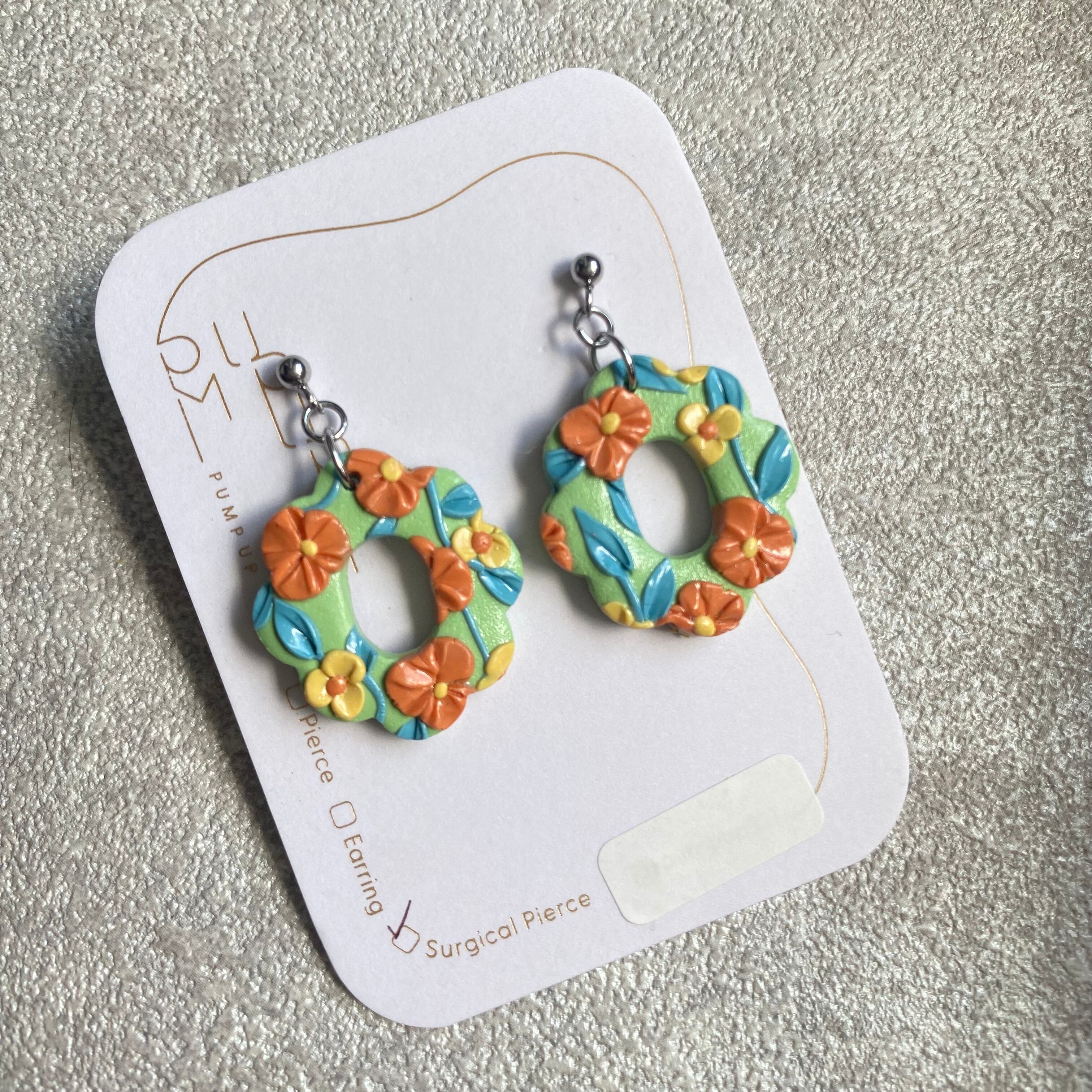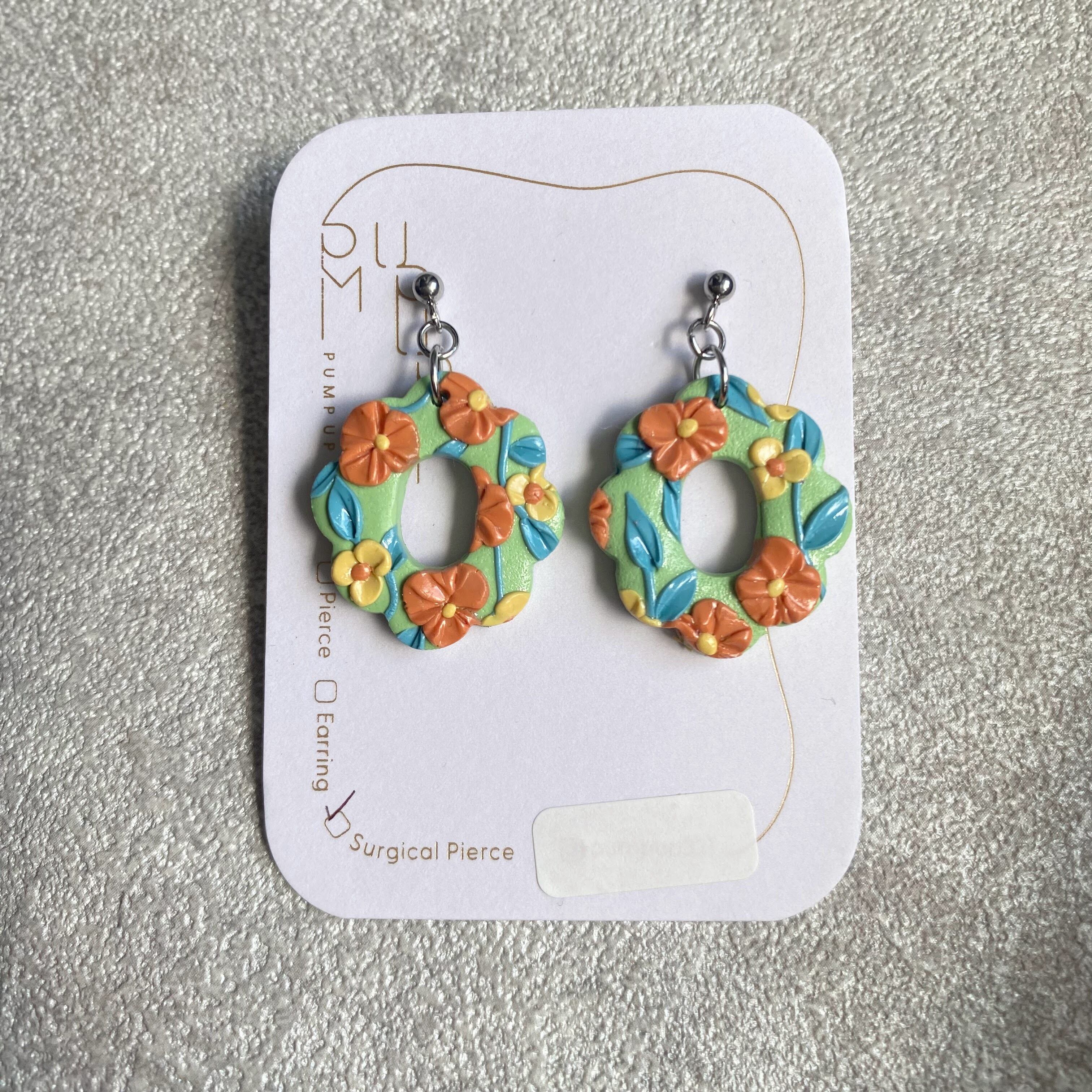 BAKE花形空洞 ピアス/イヤリング(黄緑
