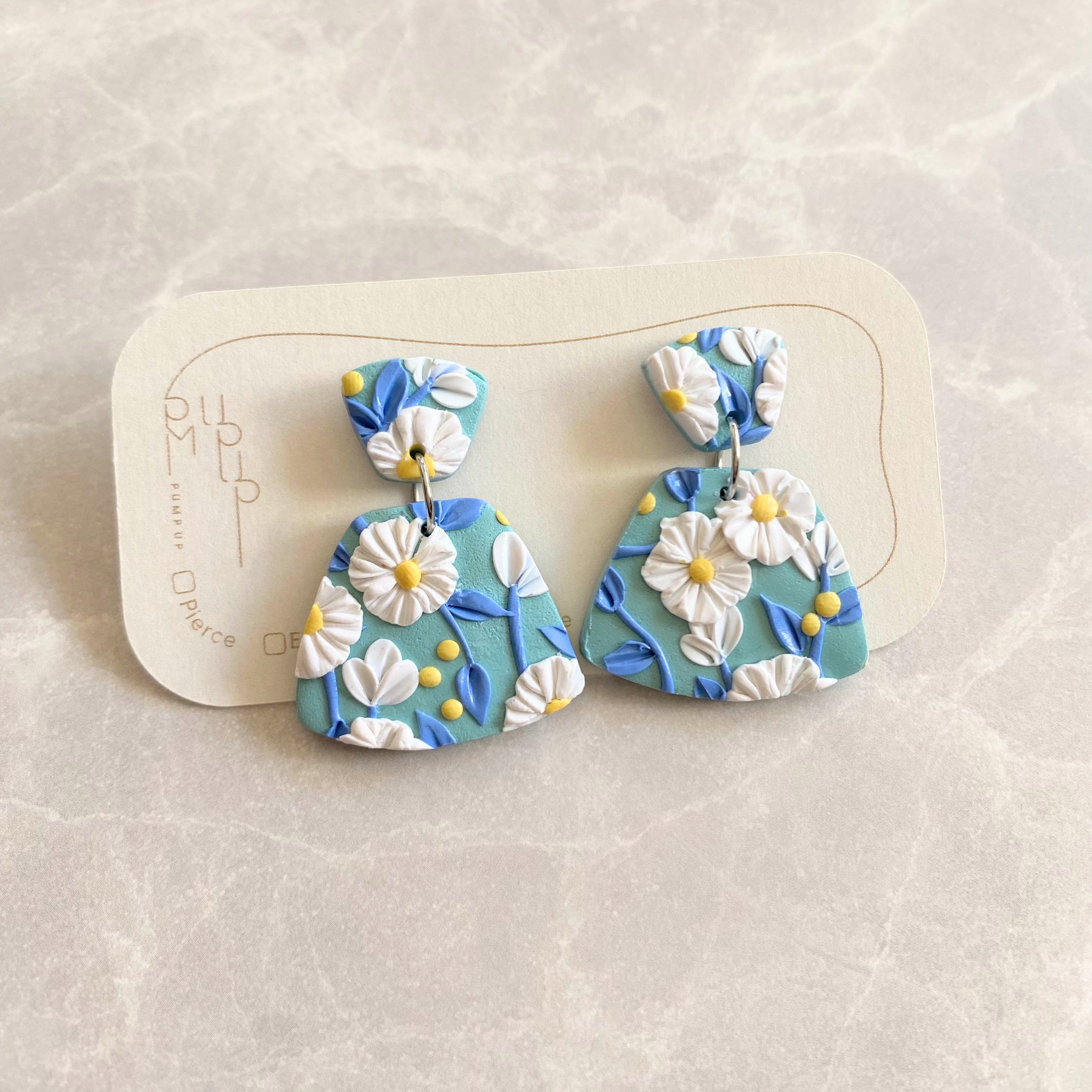 BAKE台形×台形 サージカルピアス(水色・白・黄色