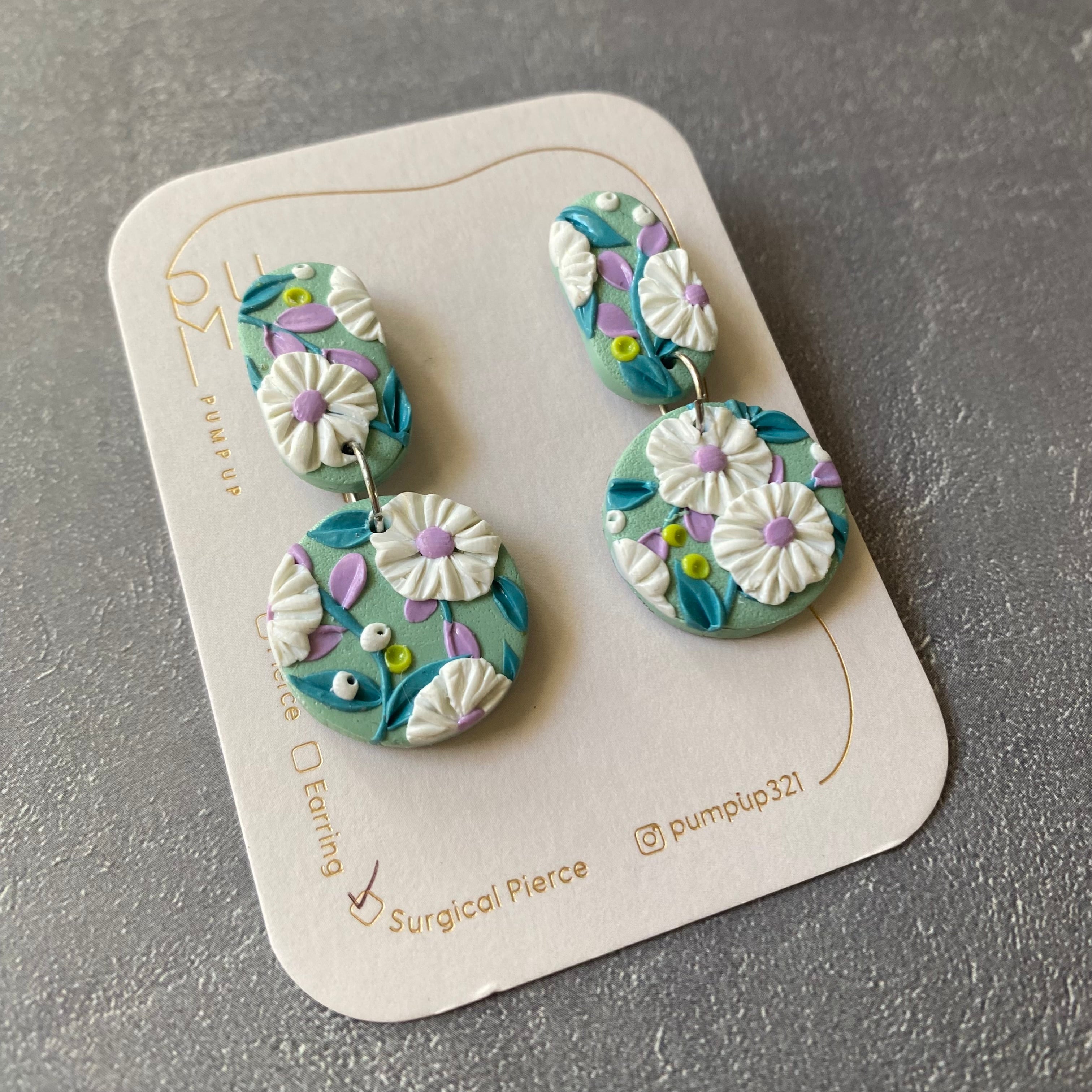 BAKE小楕円×丸 サージカルピアス(ミント・白・紫