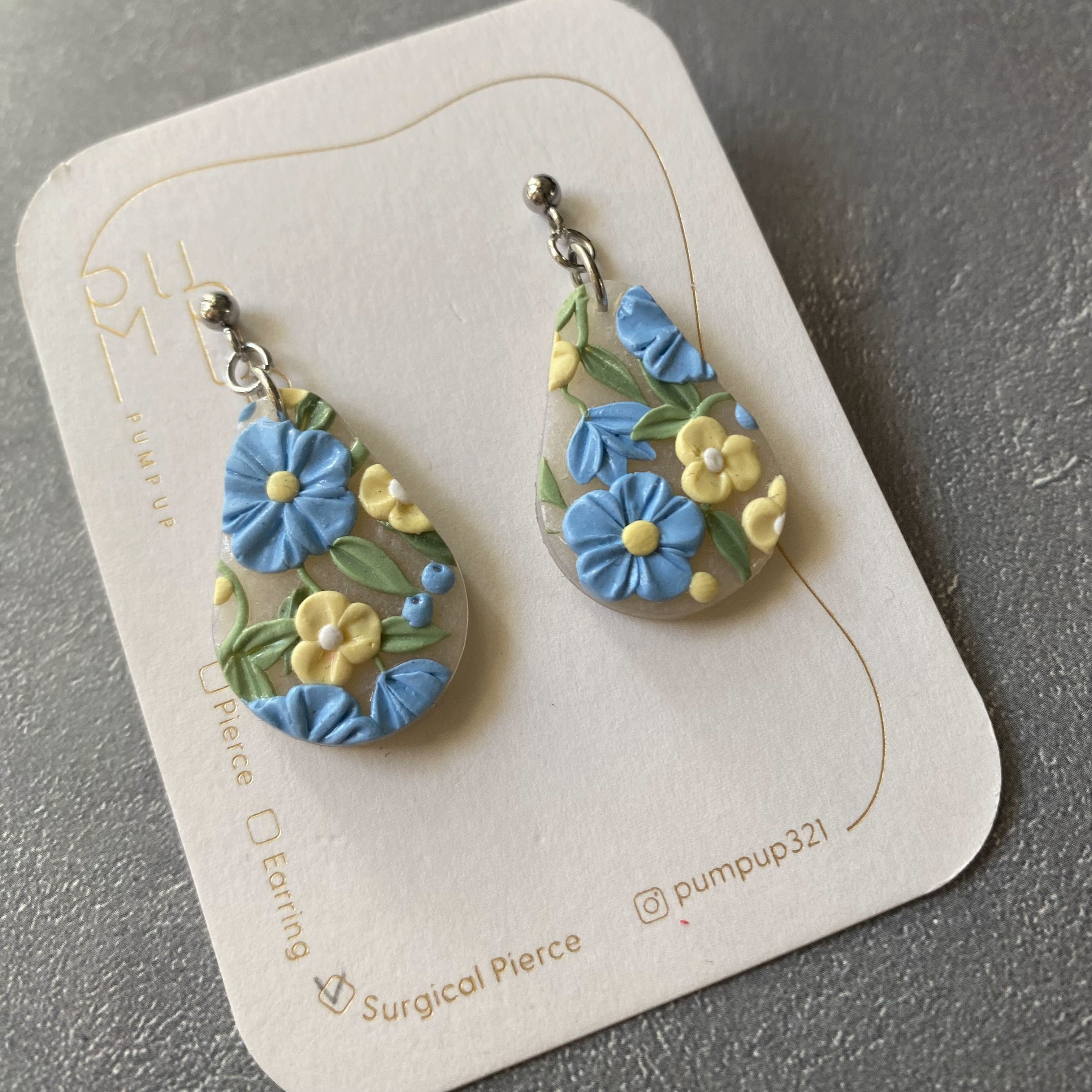 BAKE雫中 ピアス/イヤリング(半透明・黄緑・水色・黄色