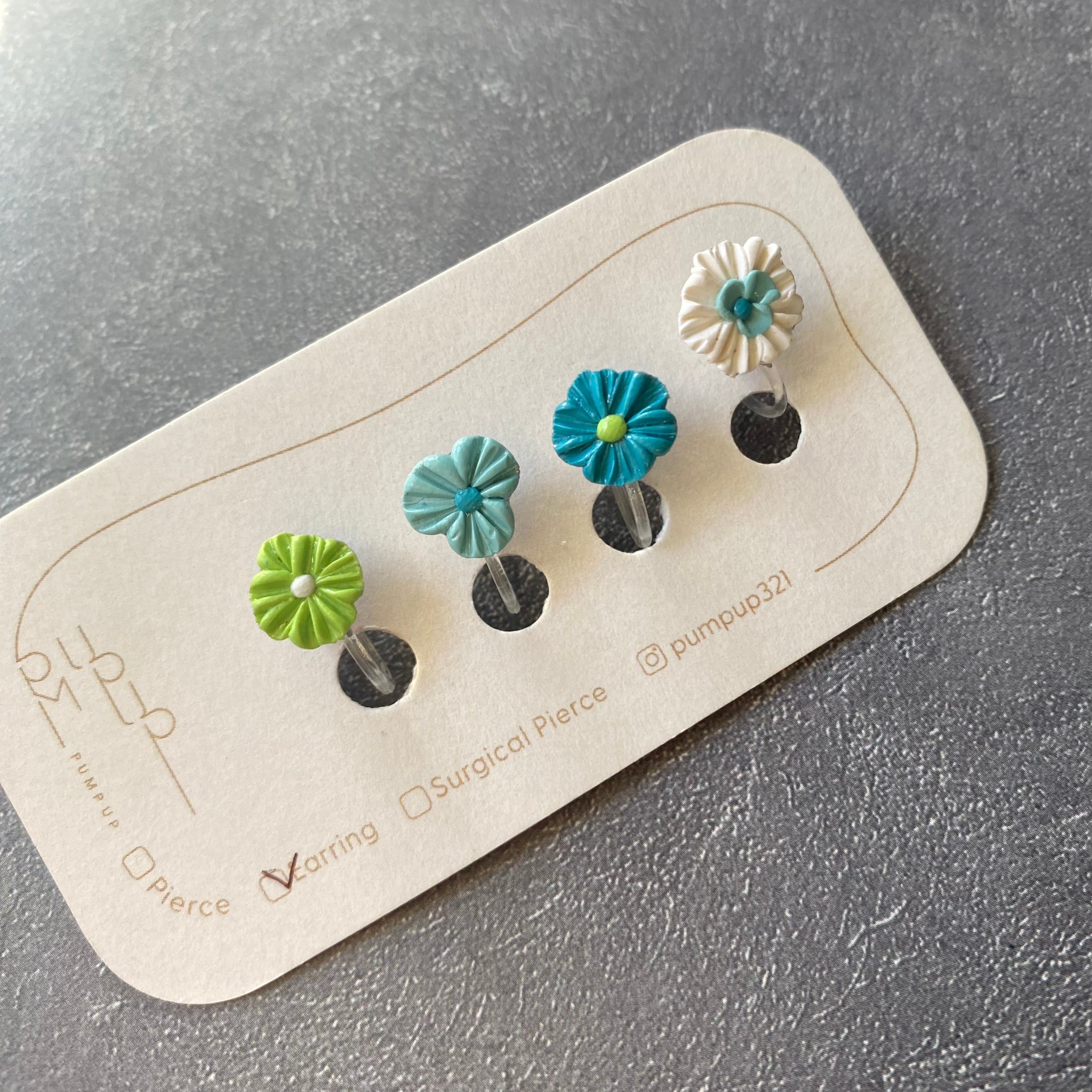 BAKEミニフラワー4種セット 樹脂イヤリング(白・水色・ブルー・黄緑