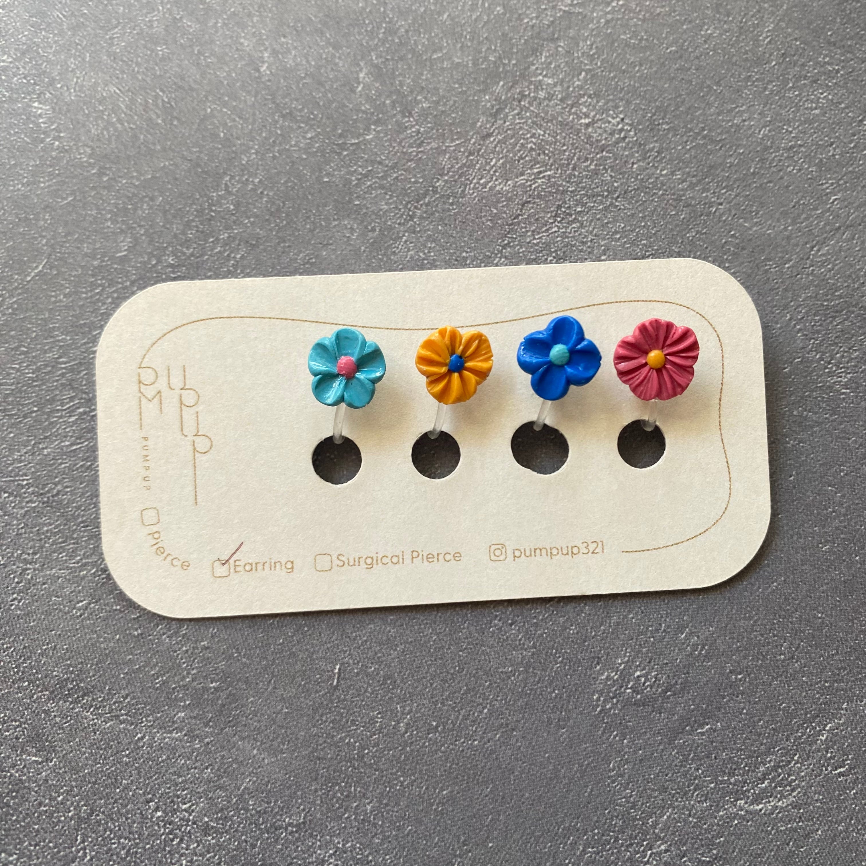 BAKEミニフラワー4種セット 樹脂イヤリング(ピンク・青・水色・黄色