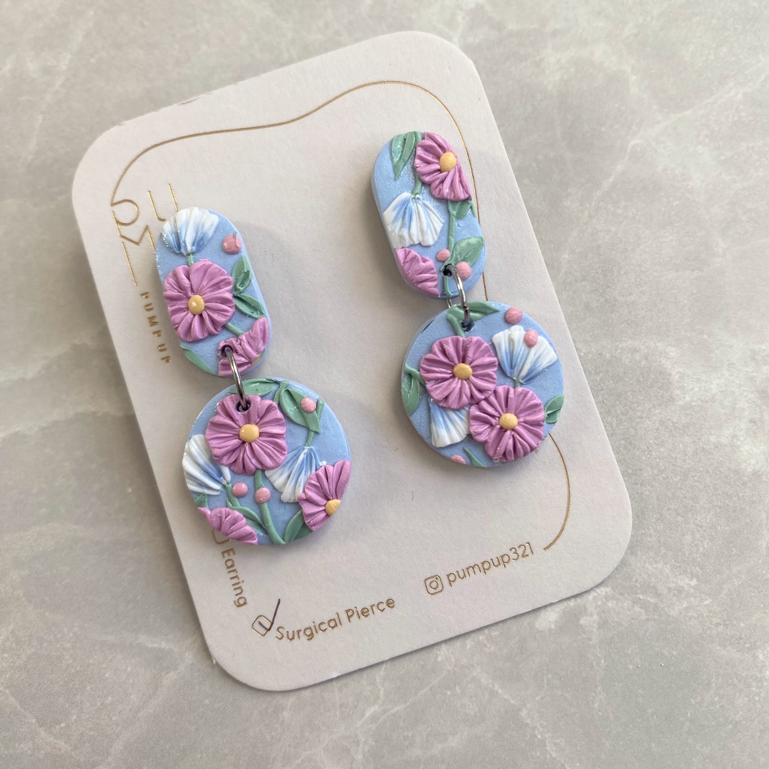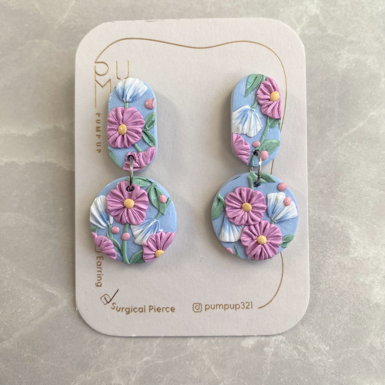 BAKE小楕円×丸 サージカルピアス(水色・ピンク