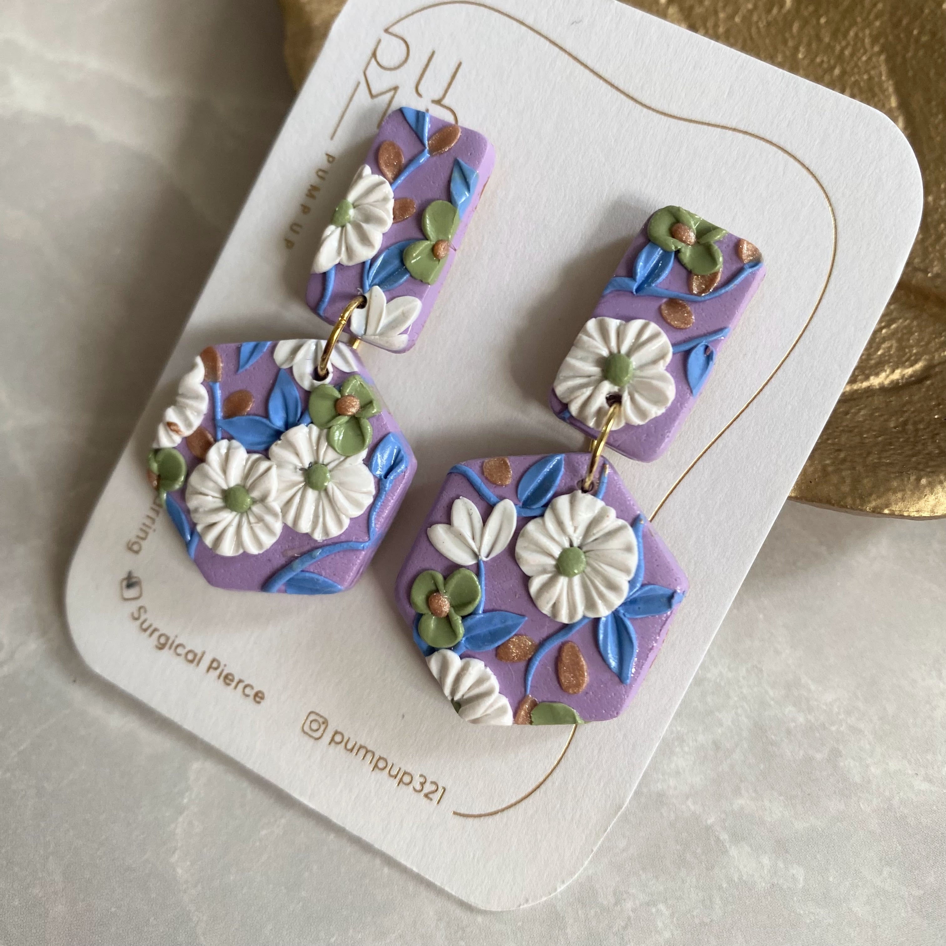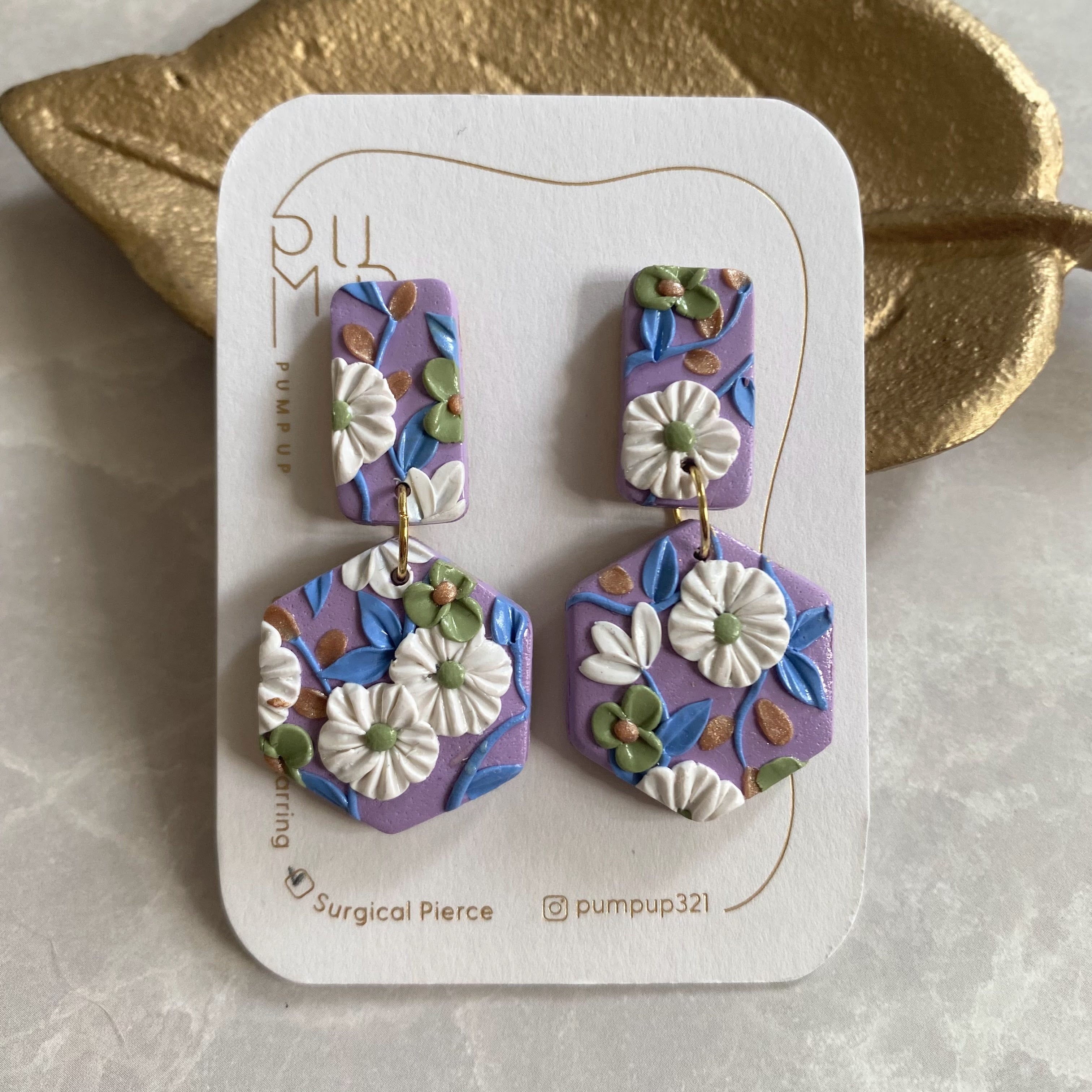 BAKE小長方形×6角形 サージカルピアス(紫・ブルー・白・緑・ゴールド