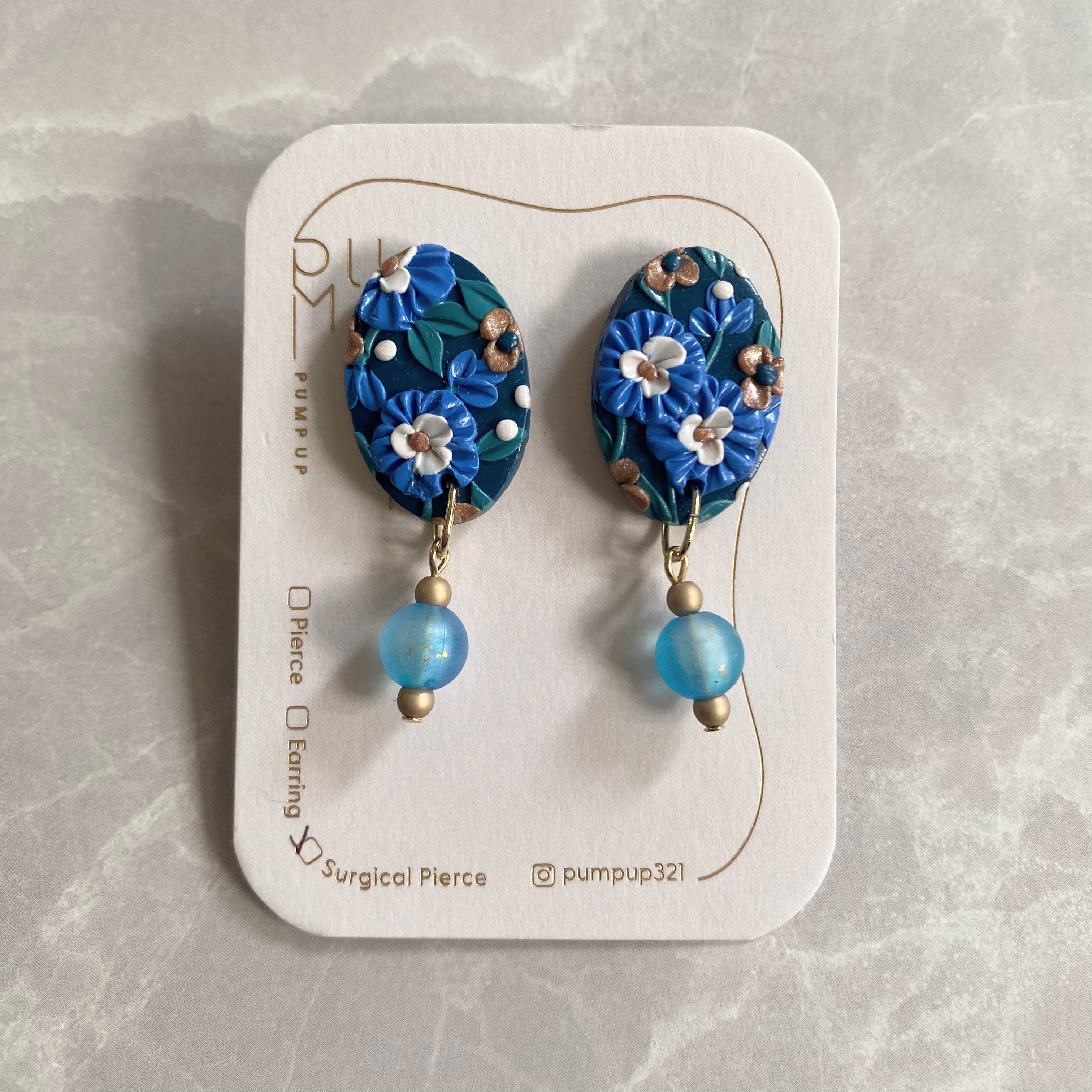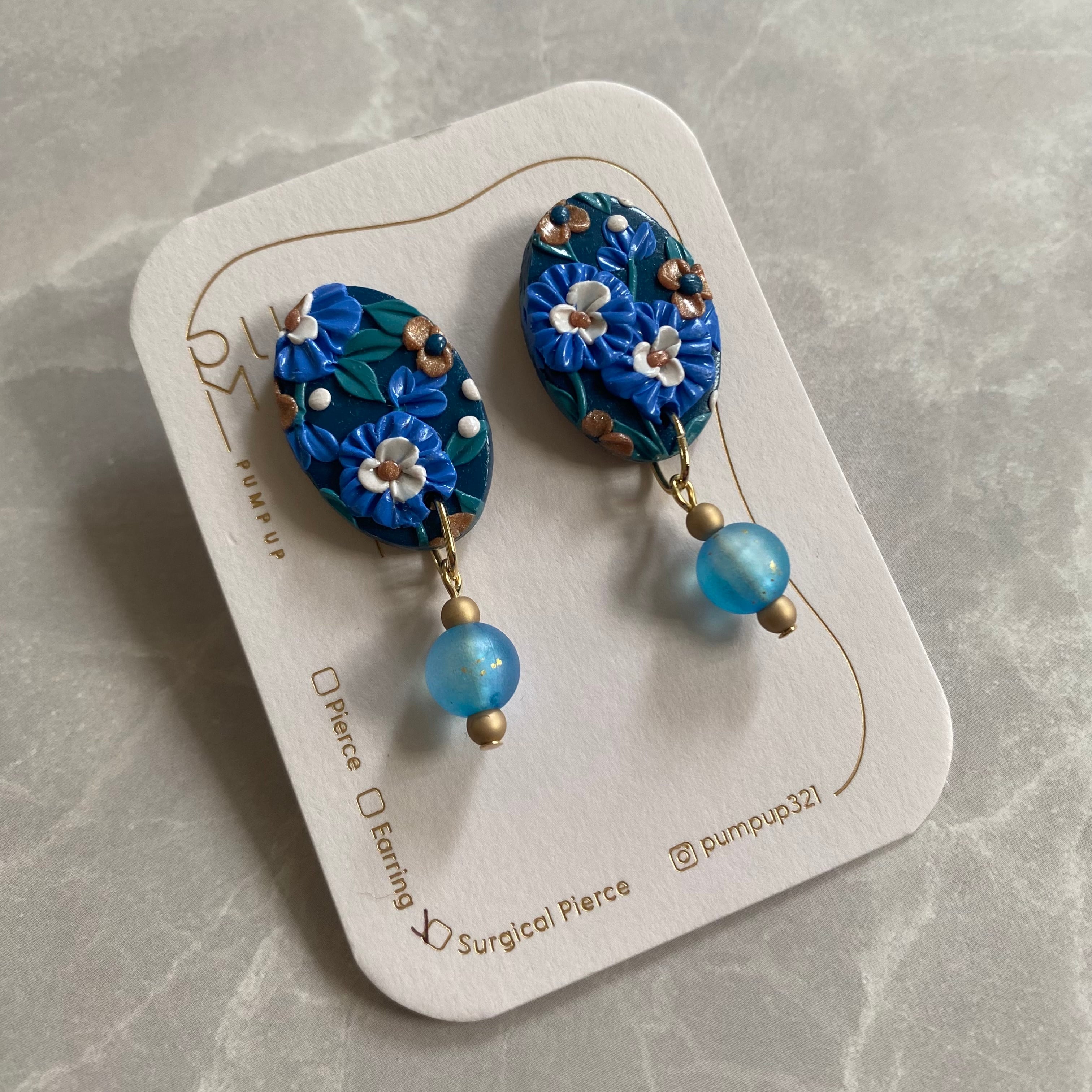 BAKEソフト楕円×ビーズ サージカルピアス(ネイビー・ブルー・白・ゴールド