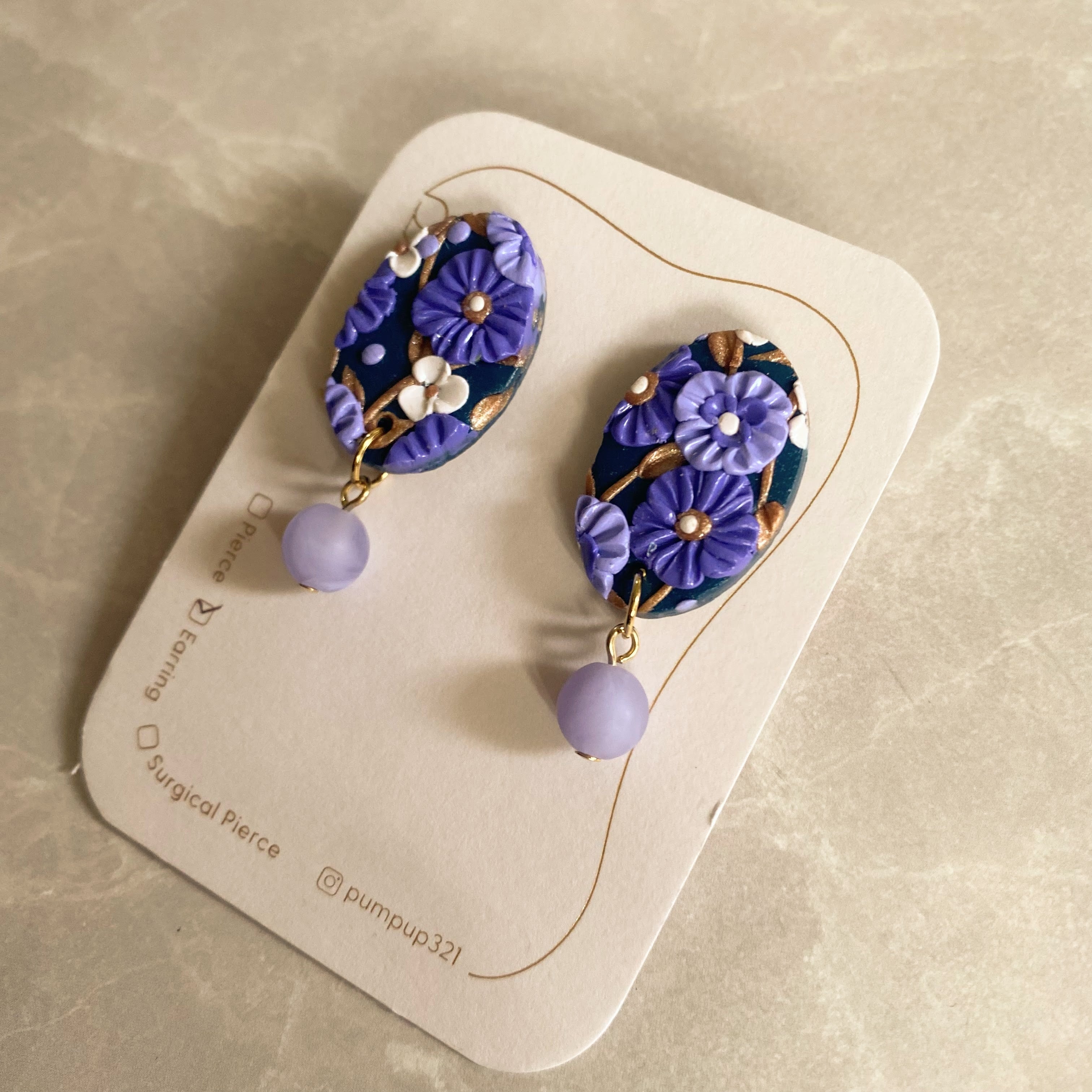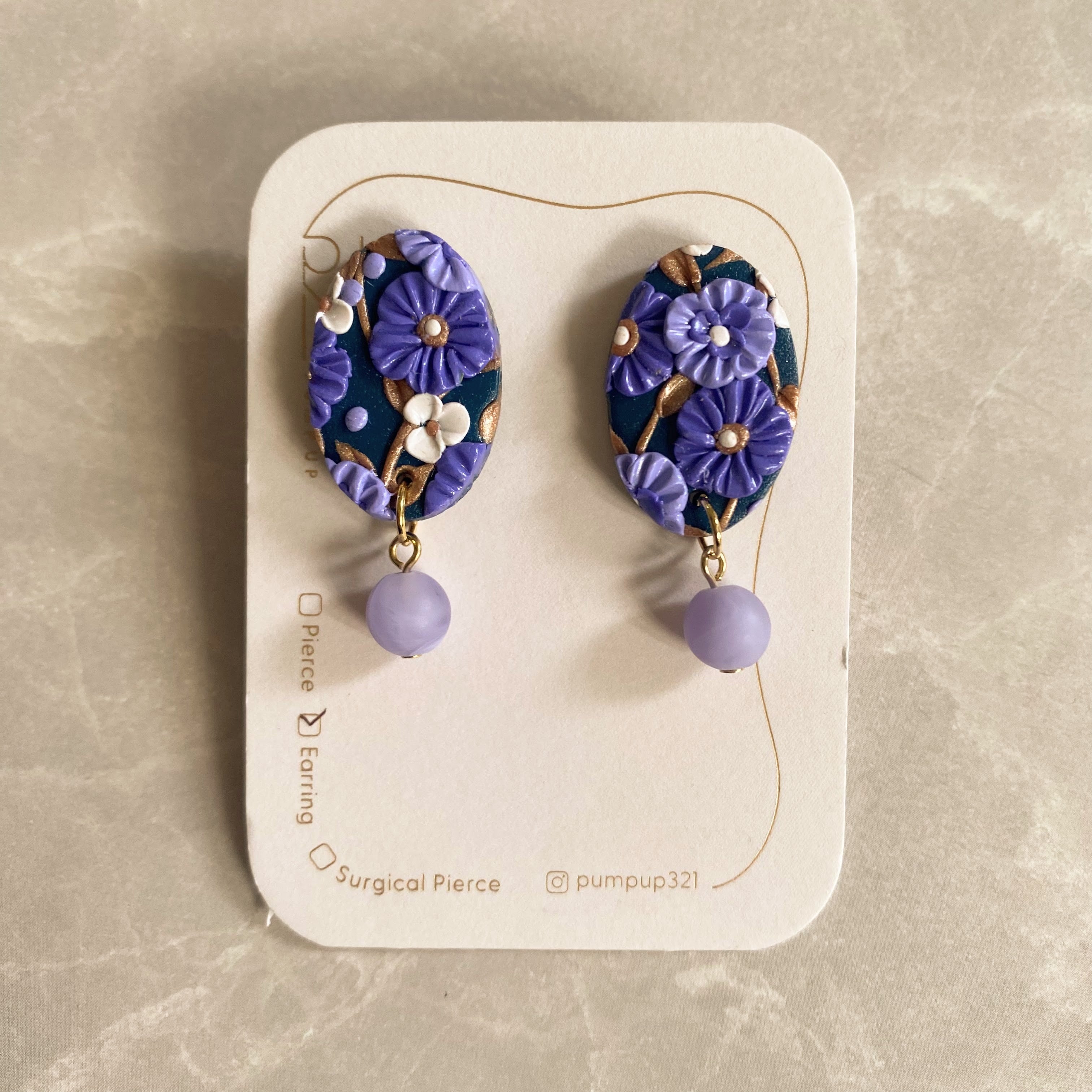 BAKEソフト楕円×ビーズ サージカルピアス(紫・ゴールド・ピンク・白