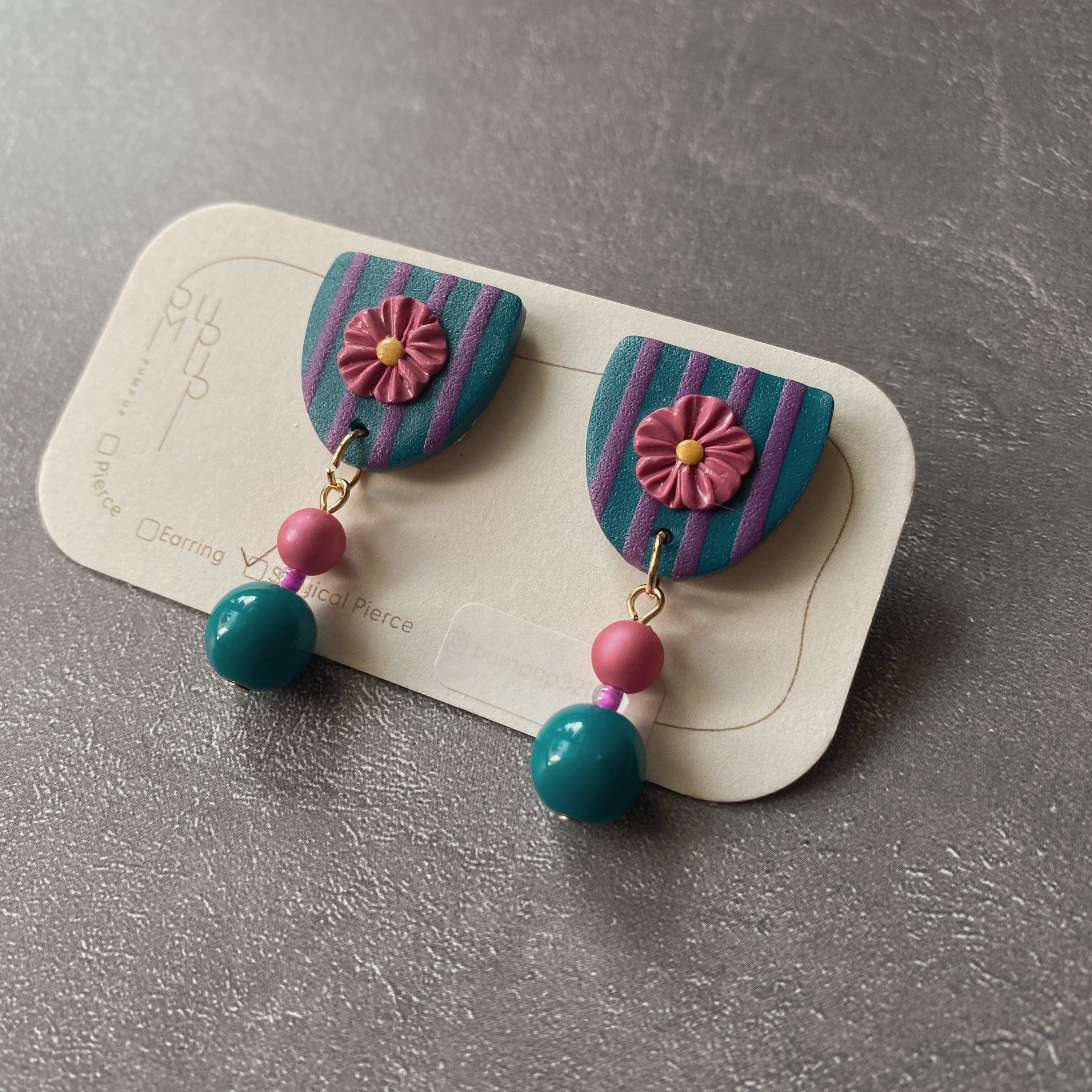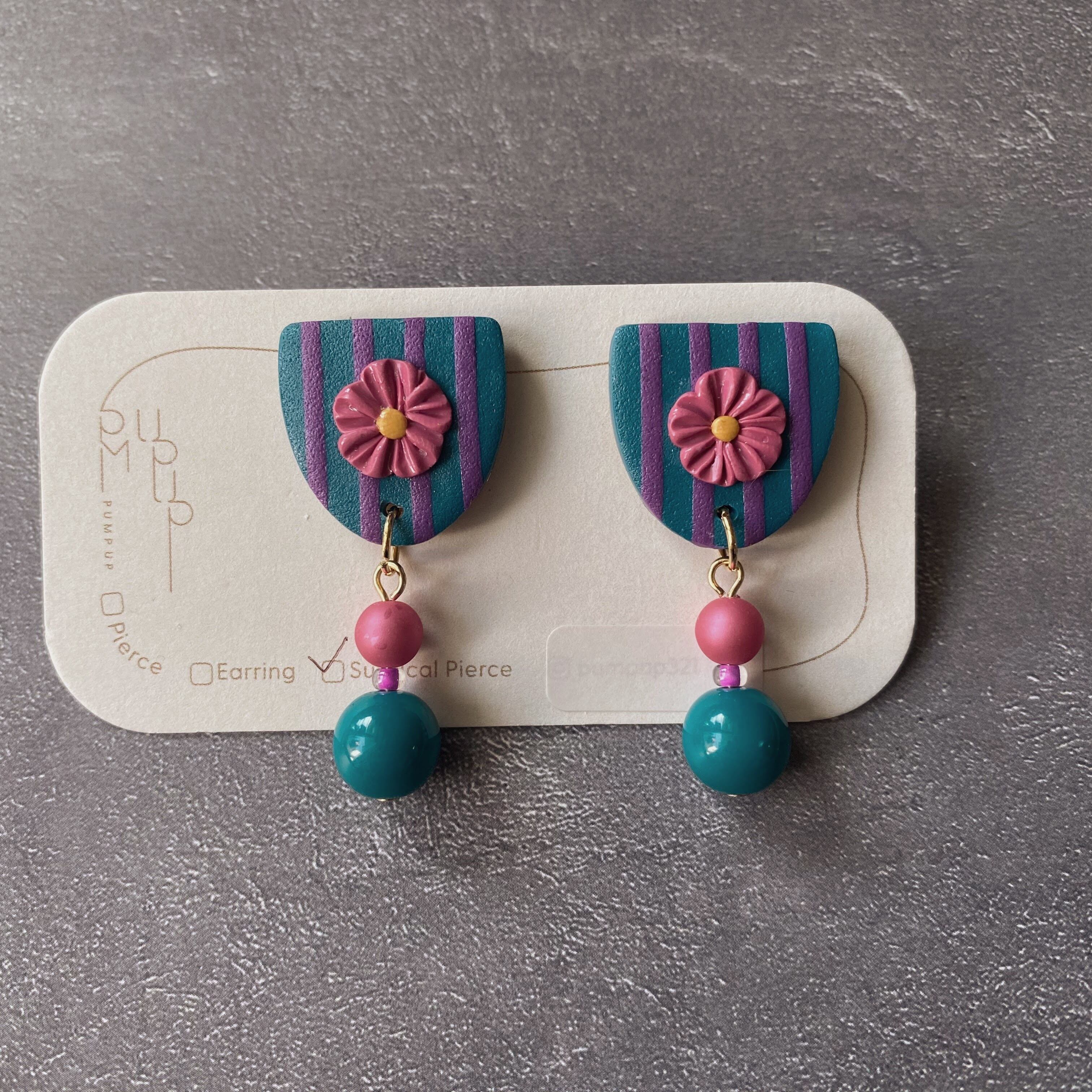 BAKE太半楕円×ビーズ サージカルピアス(ストライプ
