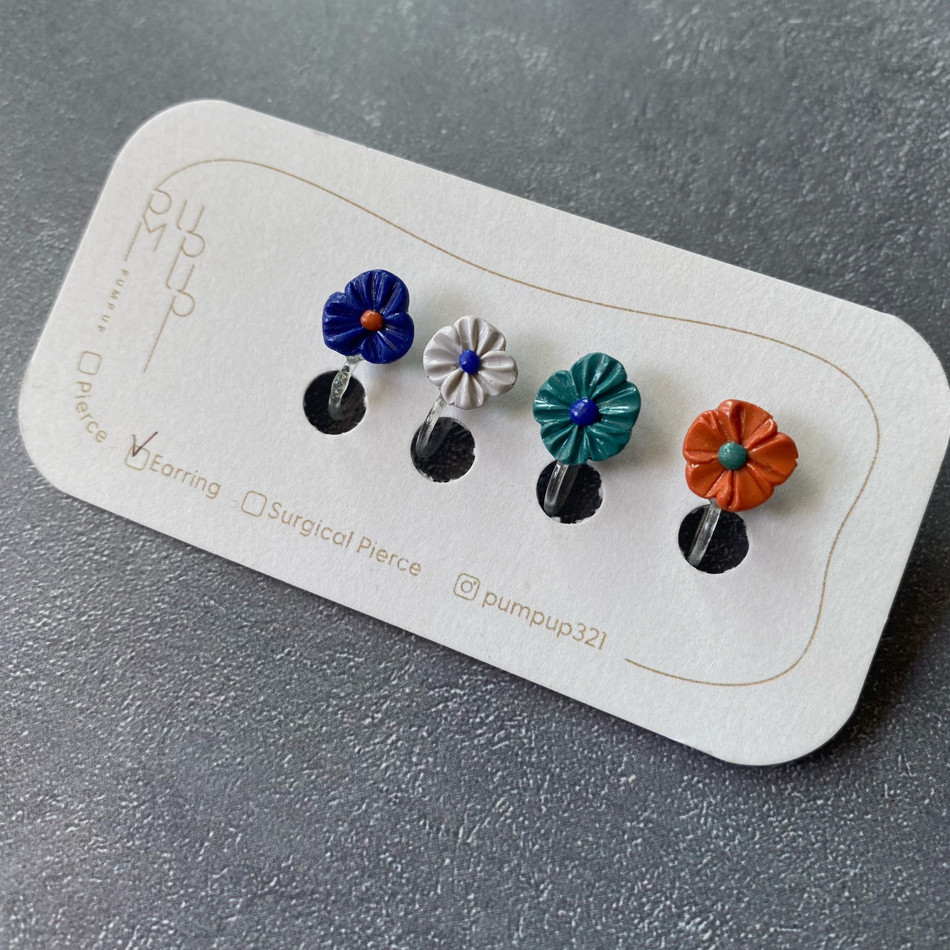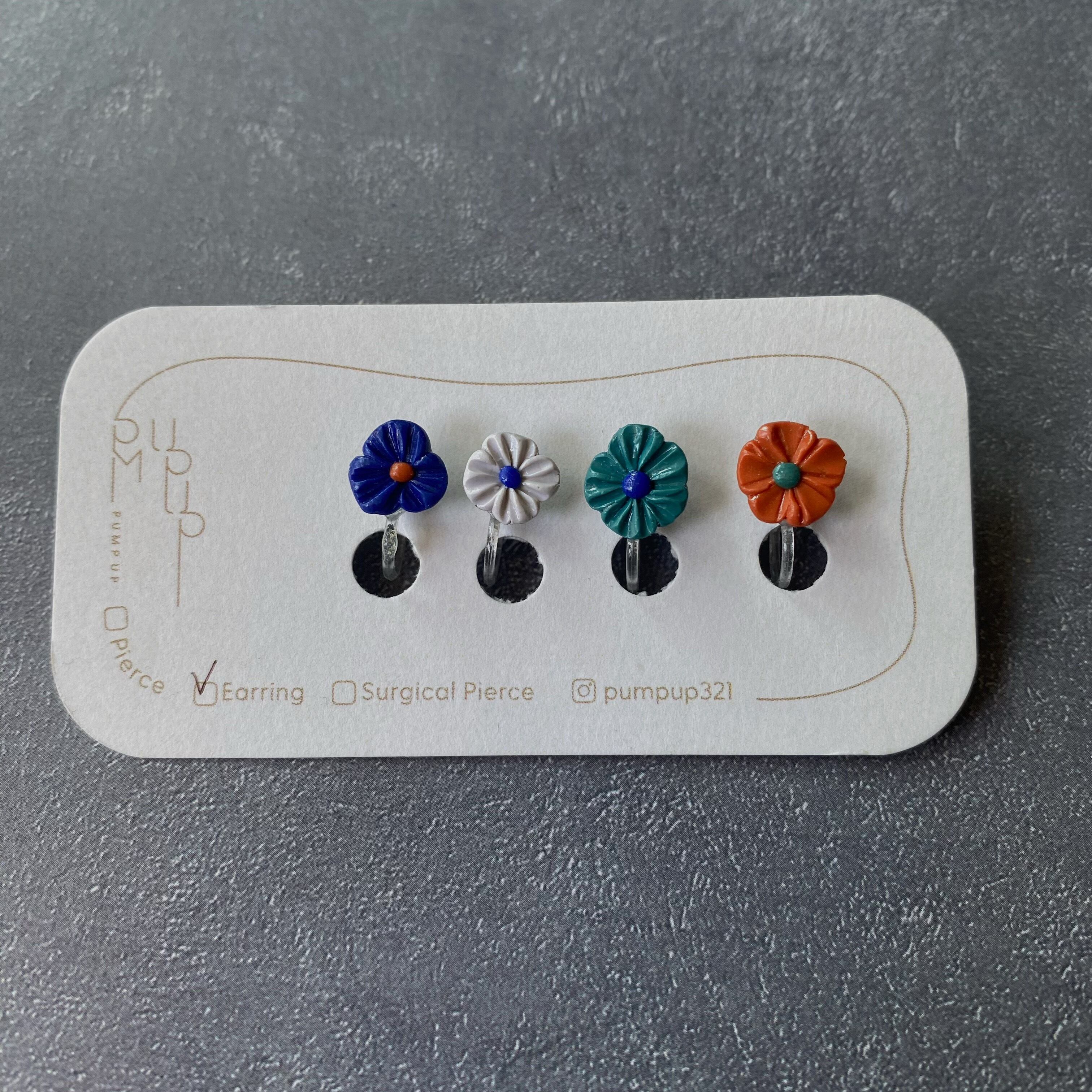 BAKEミニフラワー4種セット 樹脂イヤリング(青・白・ブルー・オレンジ