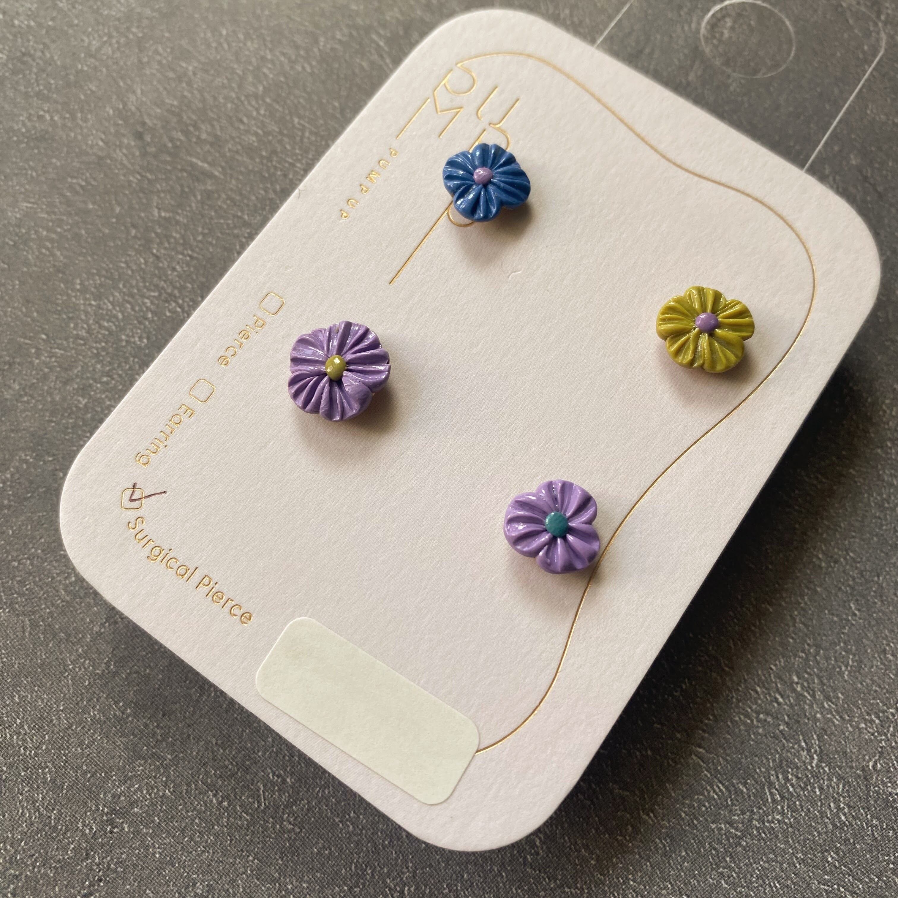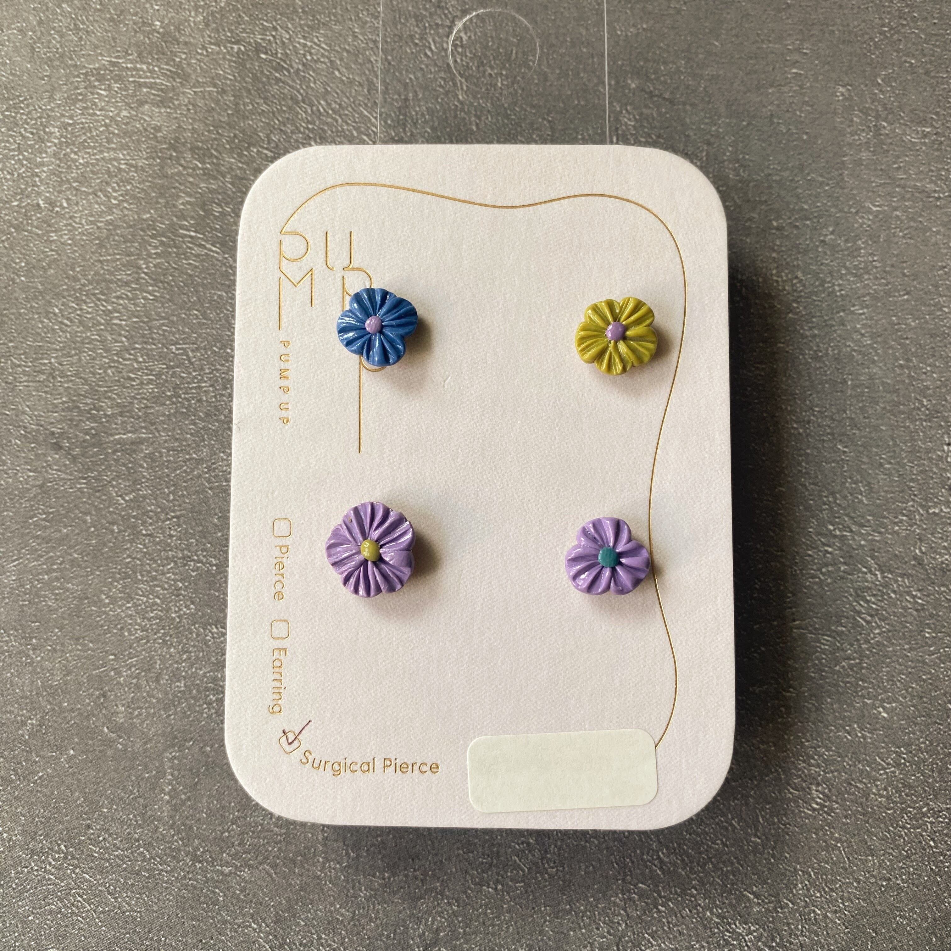 BAKEミニフラワー4種セット サージカルステンレスピアス(青・緑・紫