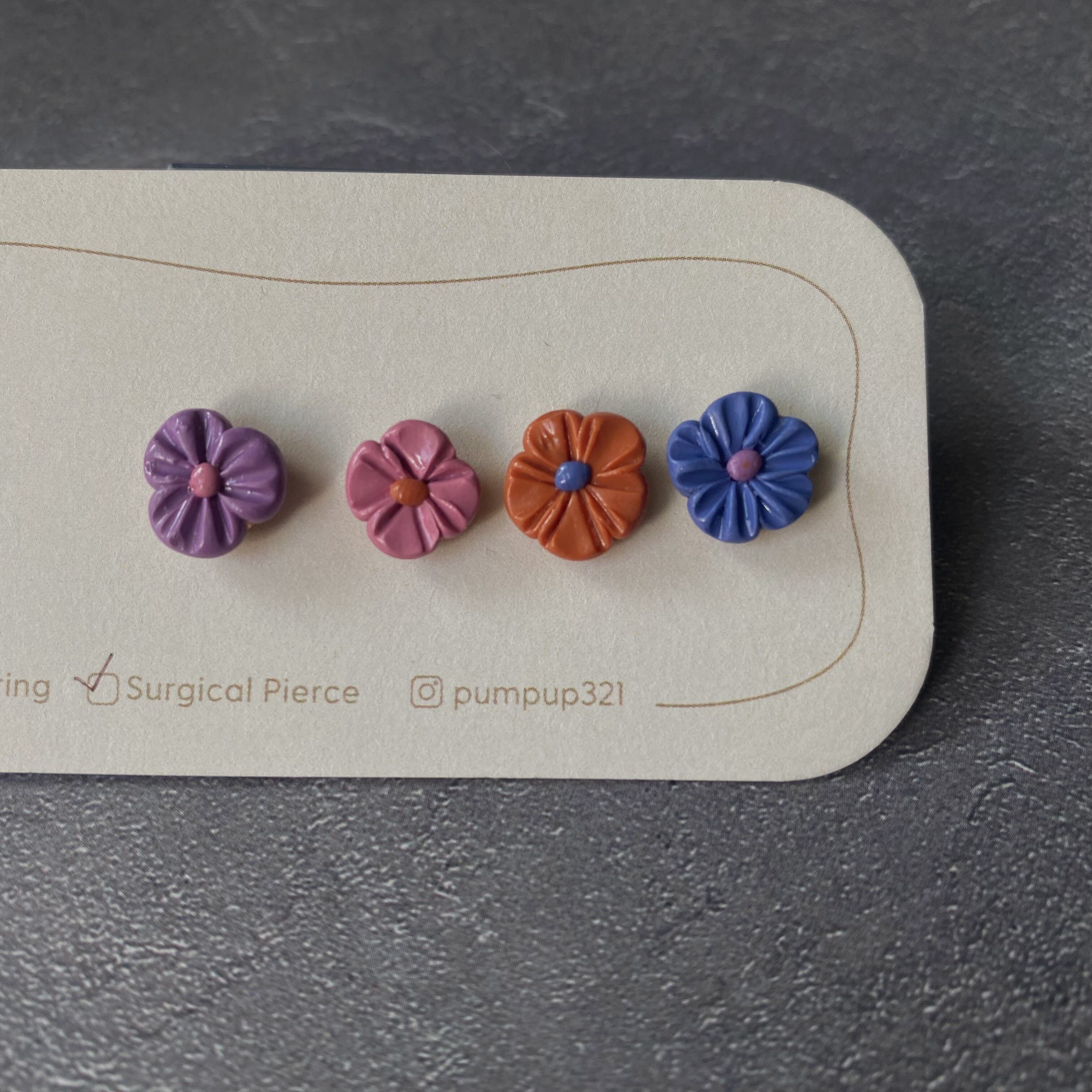 BAKEミニフラワー4種セット サージカルステンレスピアス(ブルー・オレンジ・ピンク・紫