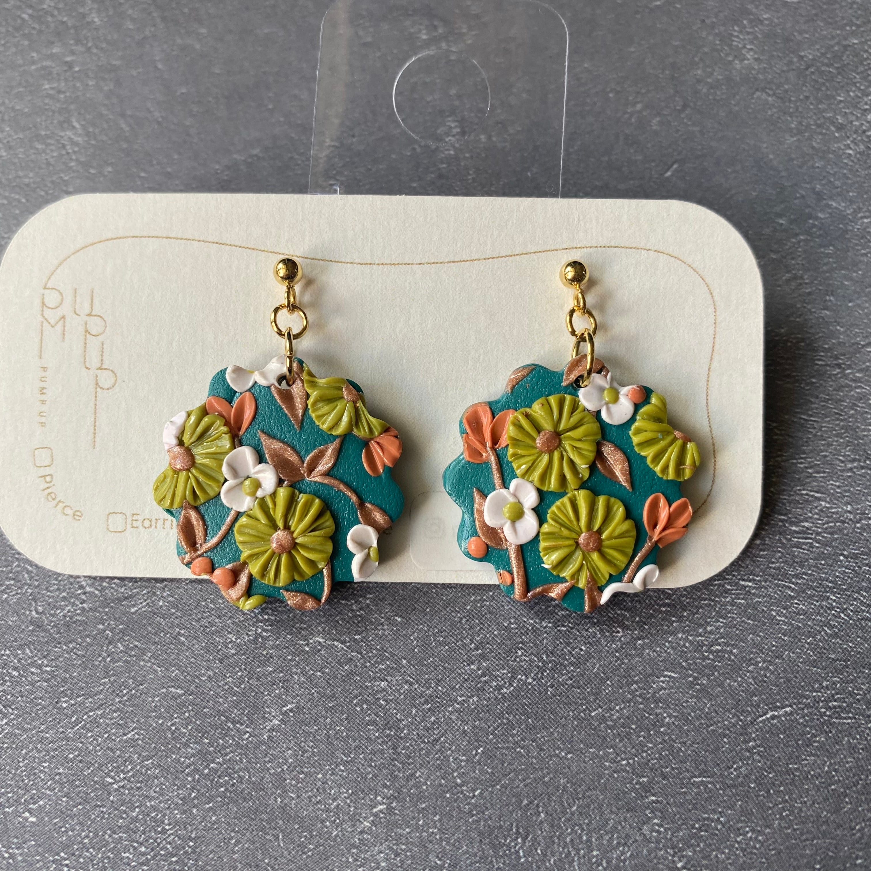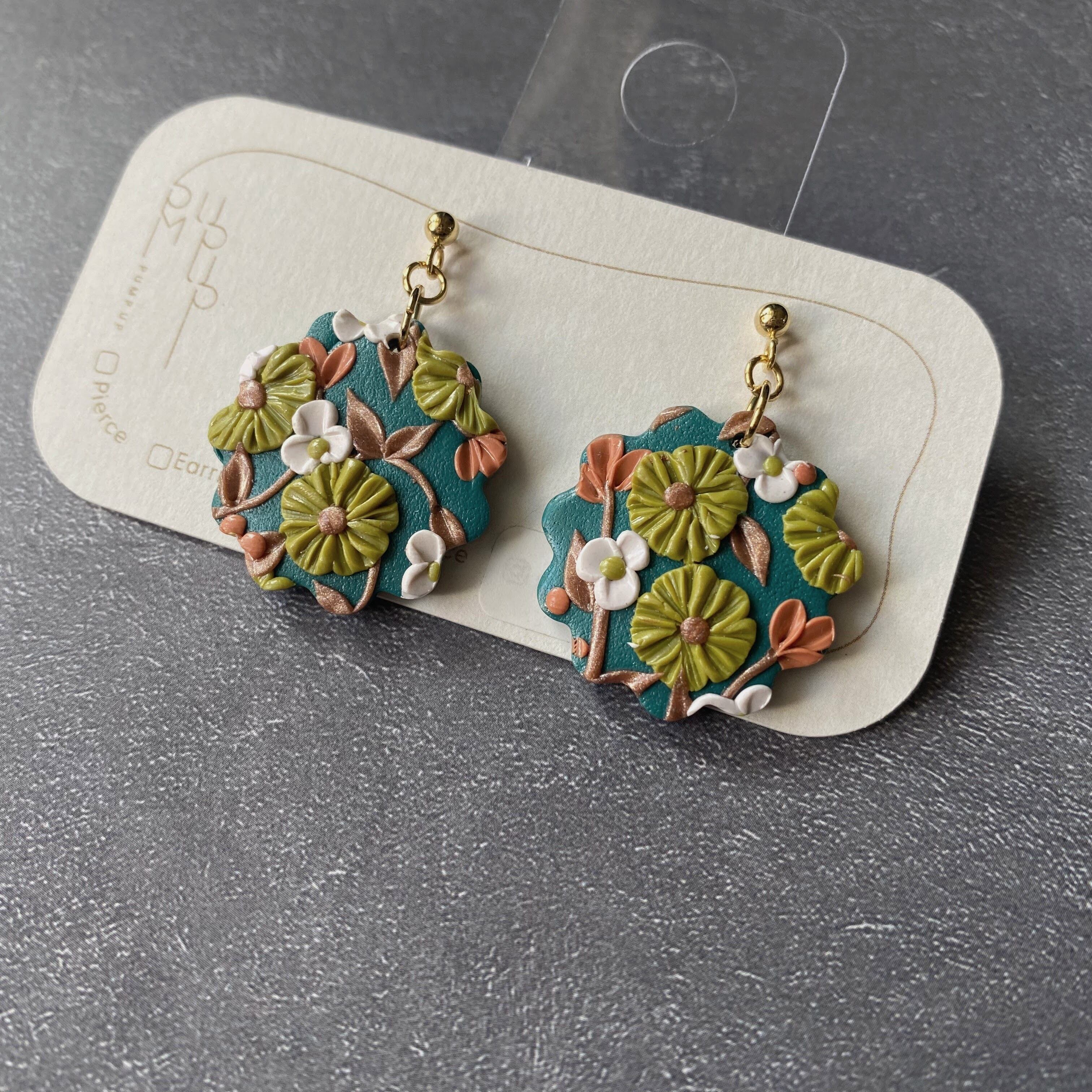 BAKE クッキー型 ピアス/イヤリング(ブルーグリーン・ゴールド・黄緑・白・オレンジ