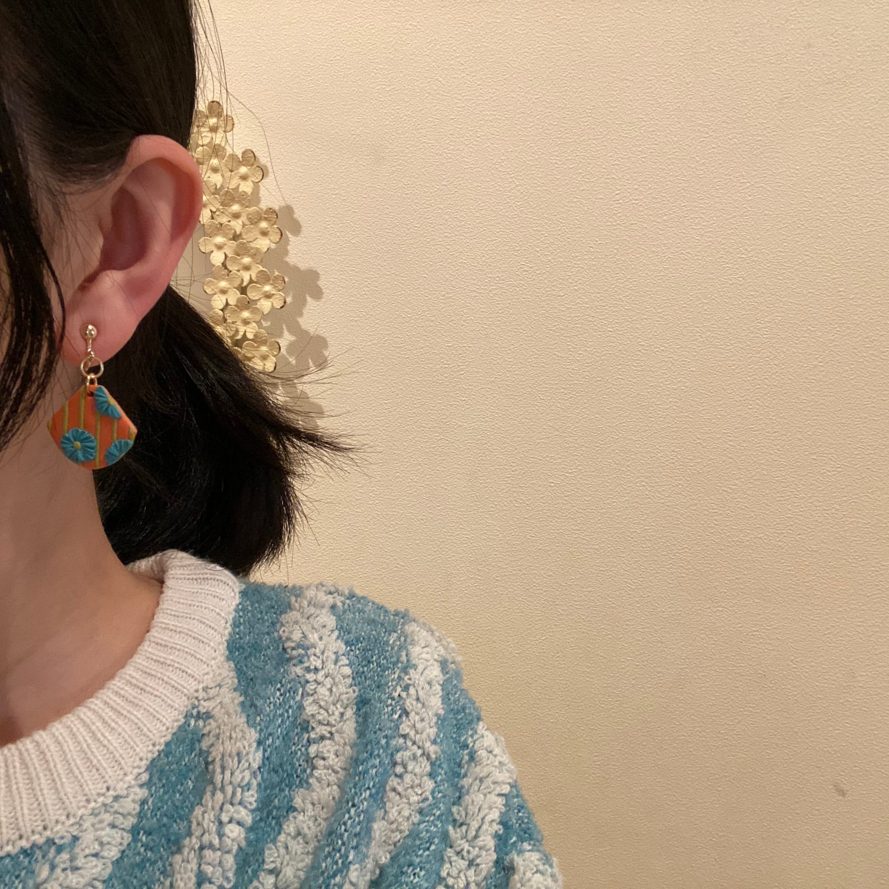 BAKE 扇型 ストライプ ピアス/イヤリング(オレンジ・黄緑・水色