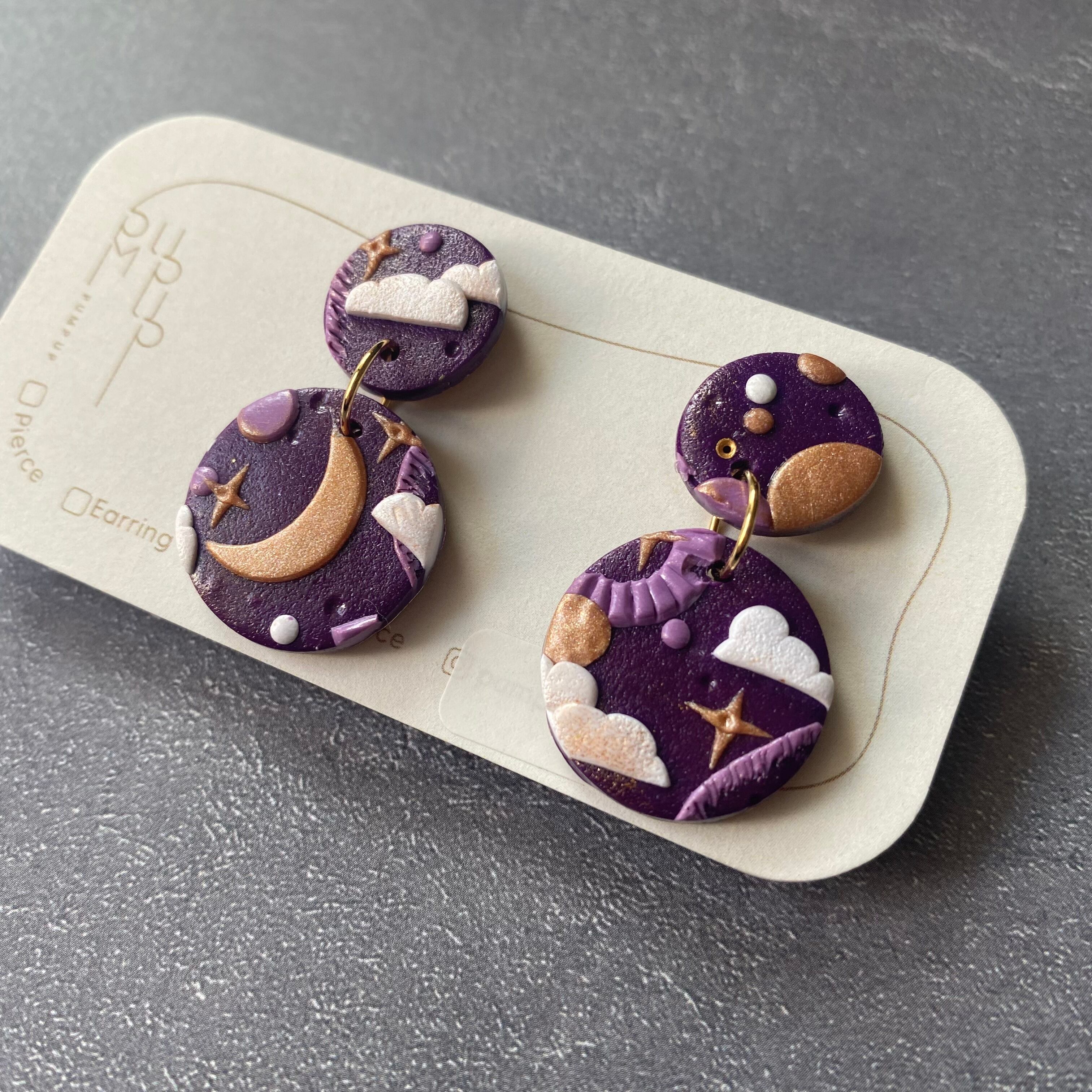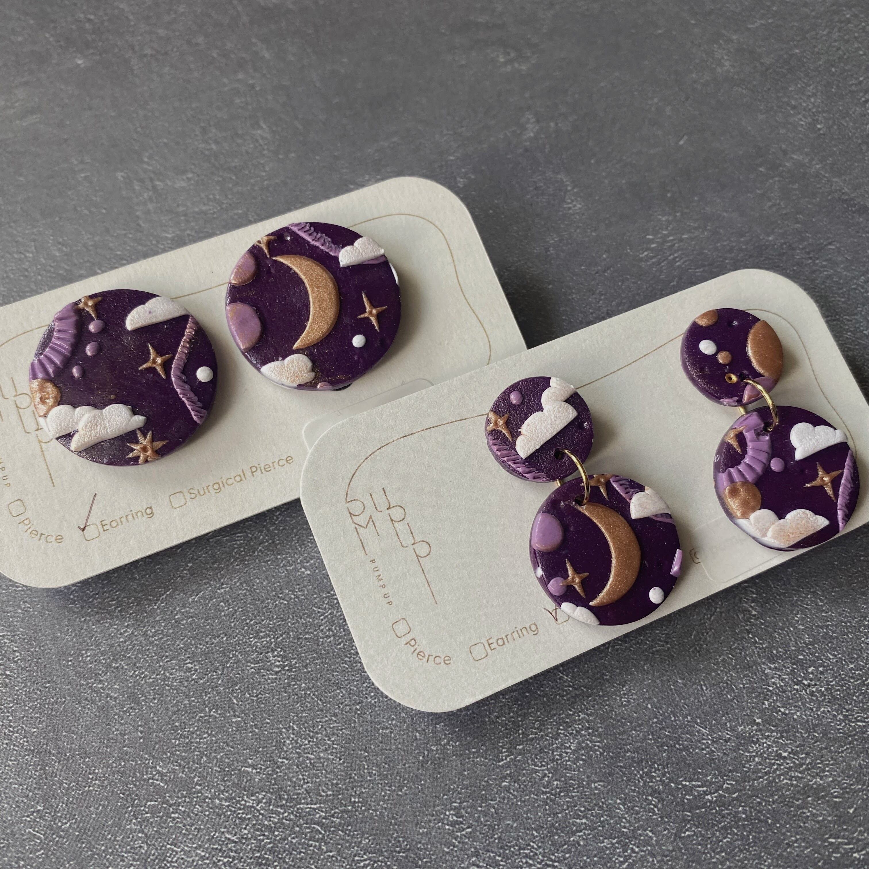 BAKE丸(小)×丸(中) 宇宙 サージカルピアス(紫・ゴールド・白