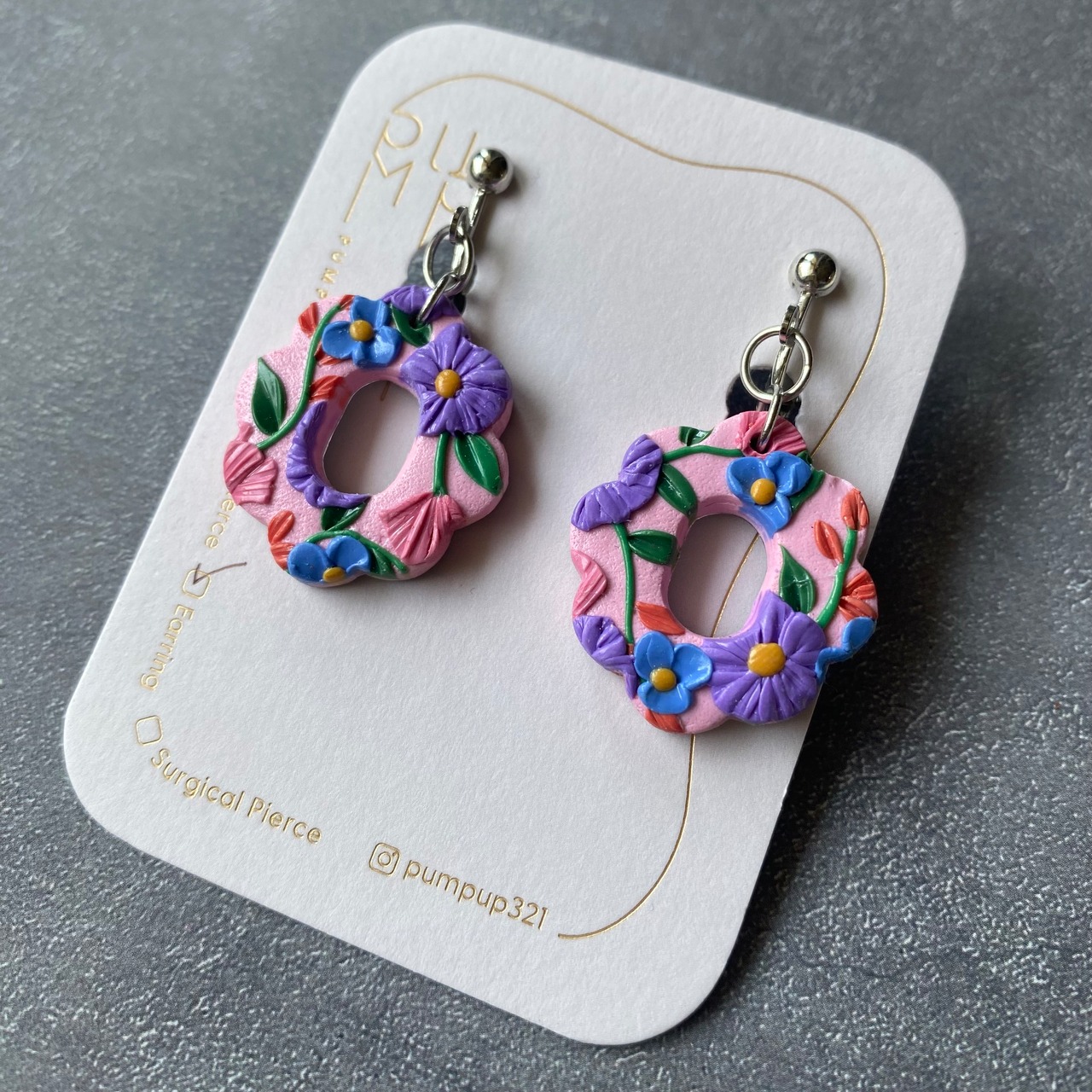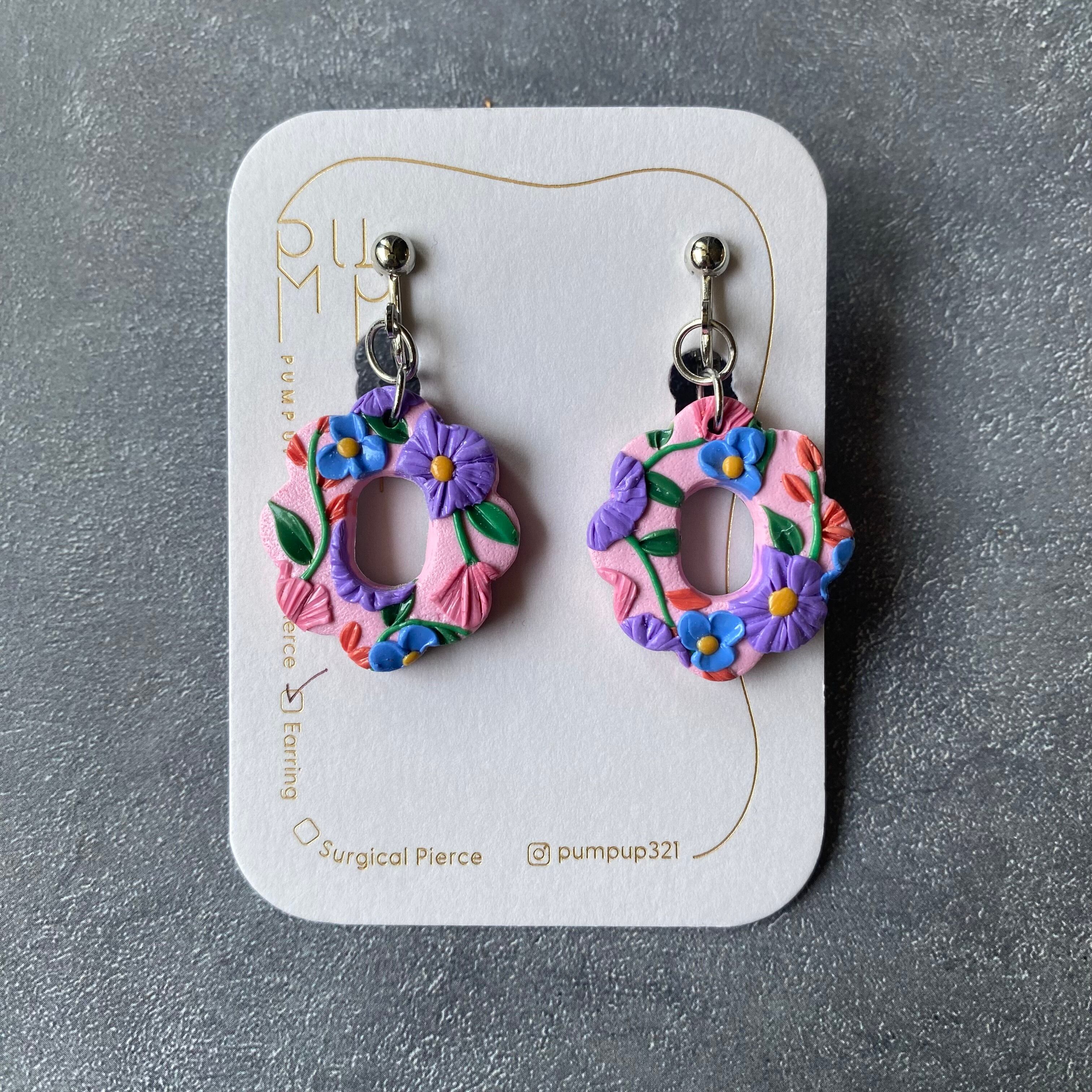 BAKE空洞花形 ピアス/イヤリング(ピンク・緑・紫・水色・オレンジ・黄色