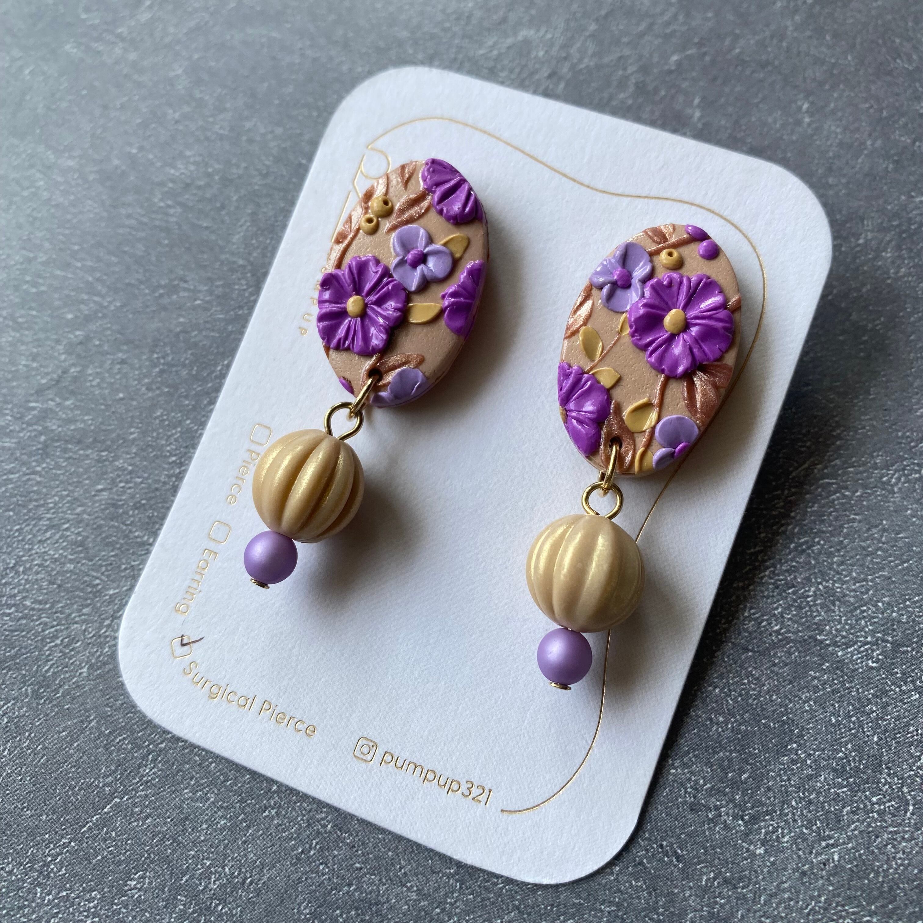 BAKEソフト楕円×ビーズ サージカルピアス(ベージュ・ゴールド・紫