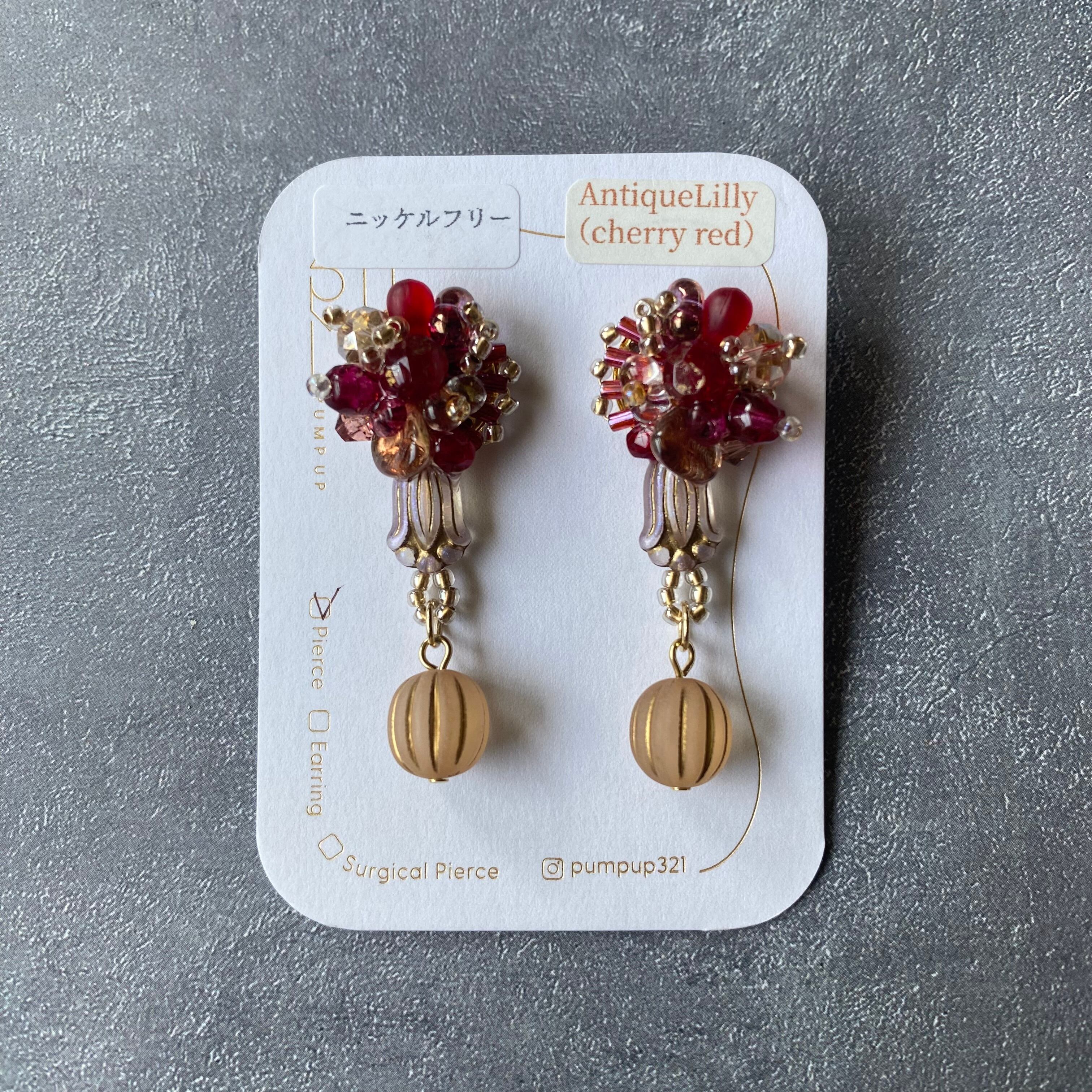 AntiqueLilly 【cherry red】ニッケルフリーメッキピアス