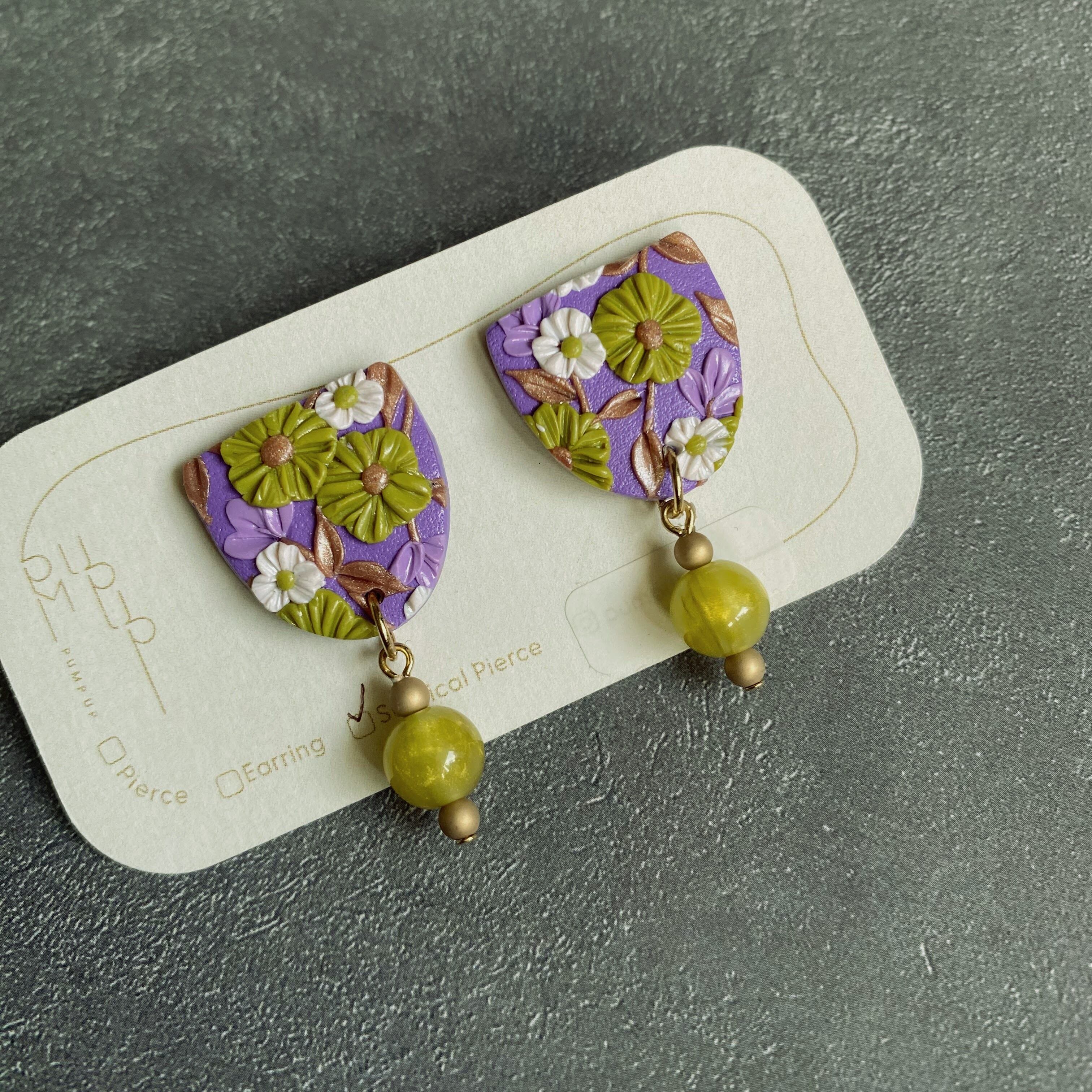 BAKE太半楕円×ビーズ サージカルピアス(紫・金・ワサビ・白