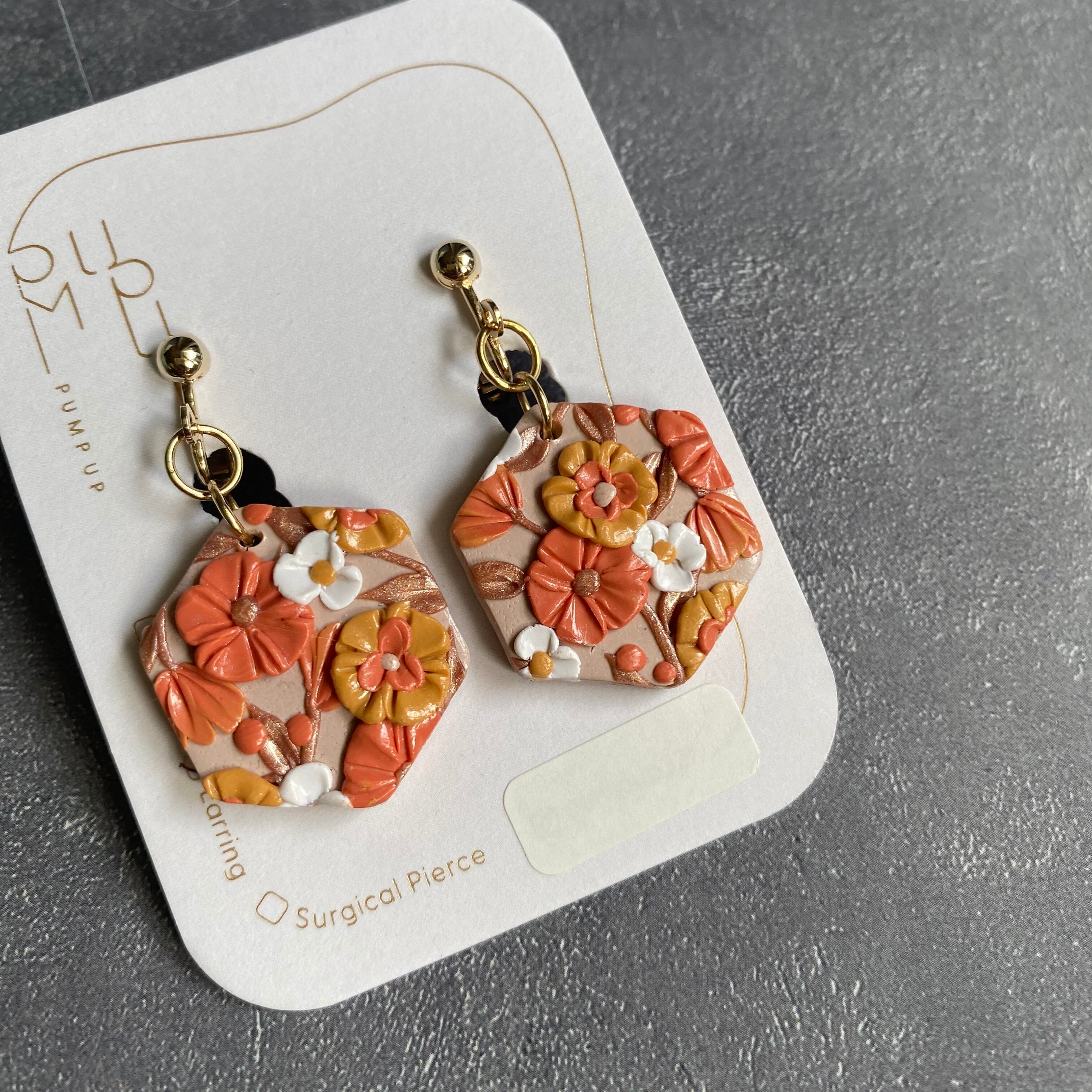 BAKE 6角形 ピアス/イヤリング(ベージュ・ゴールド・白・オレンジ