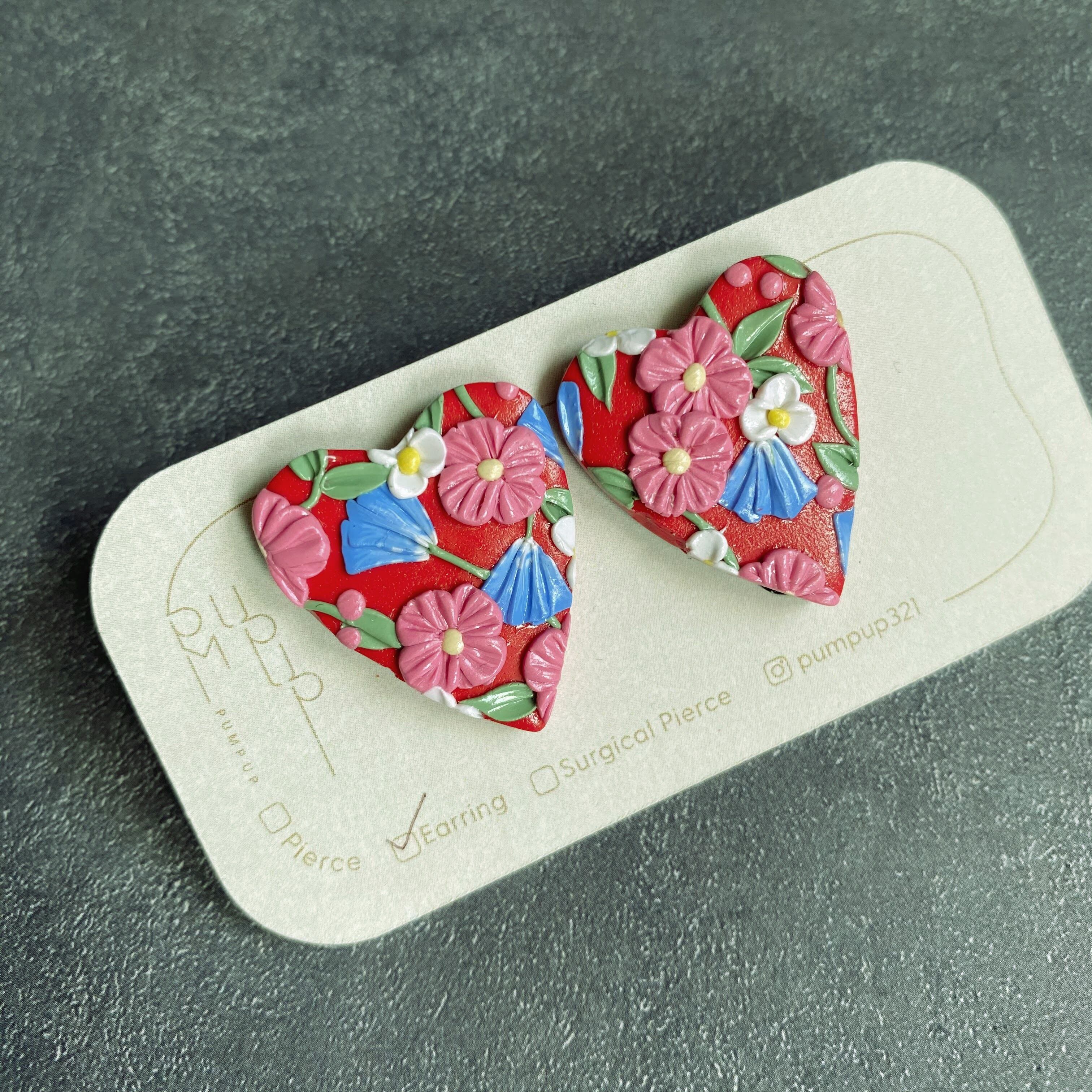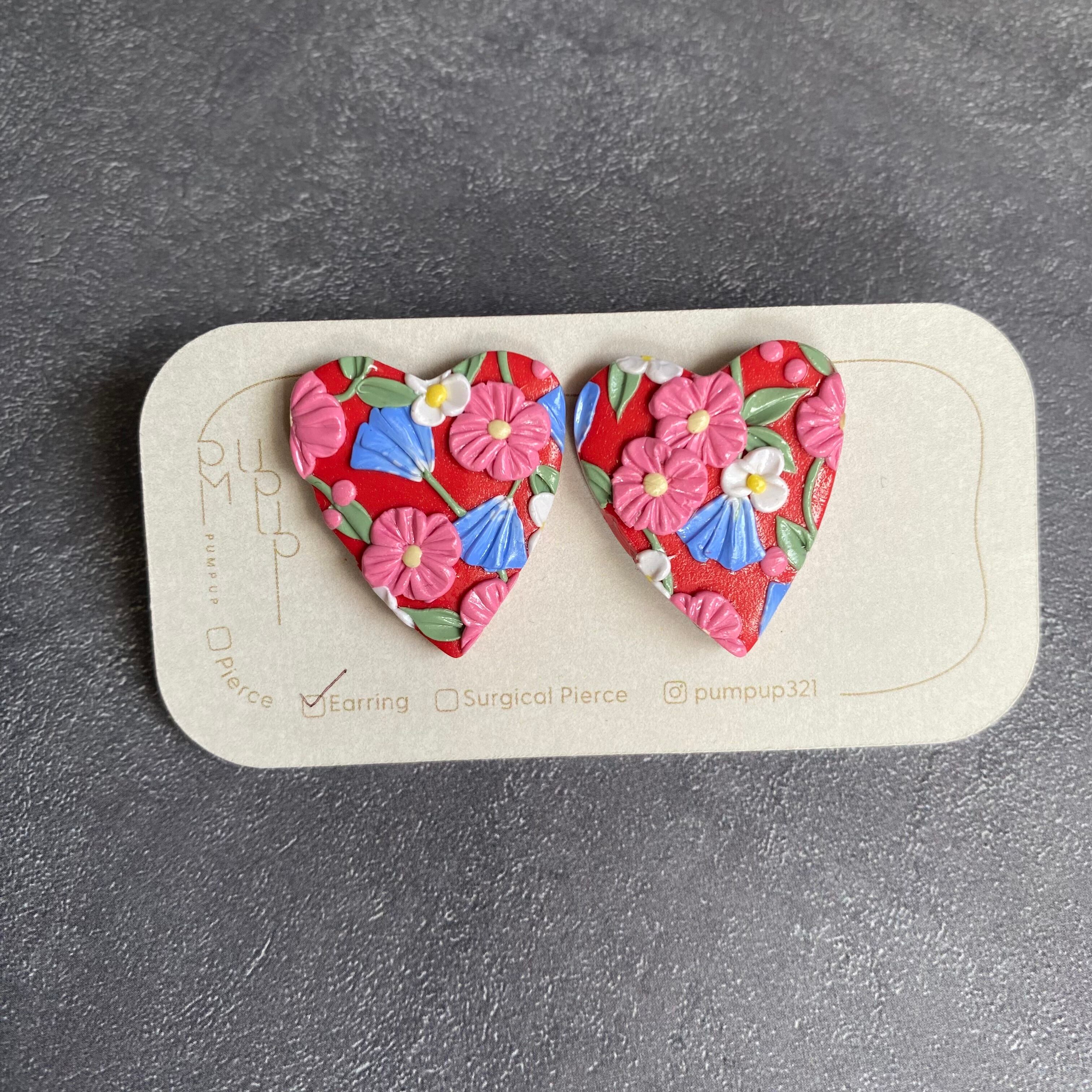 BAKEハート イヤリング(赤・緑・ピンク・白・水色