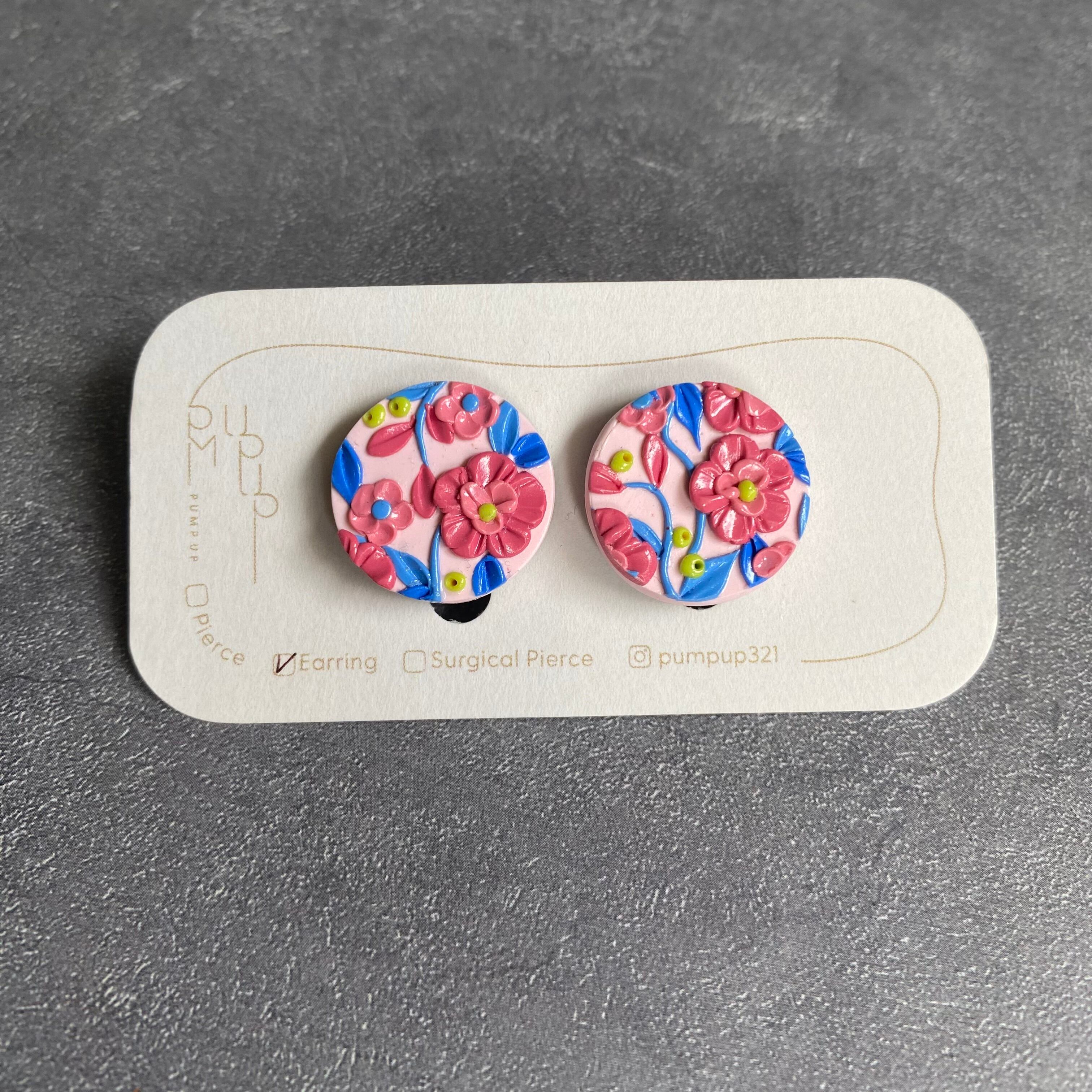 BAKE丸(中) イヤリング(ピンク・ブルー