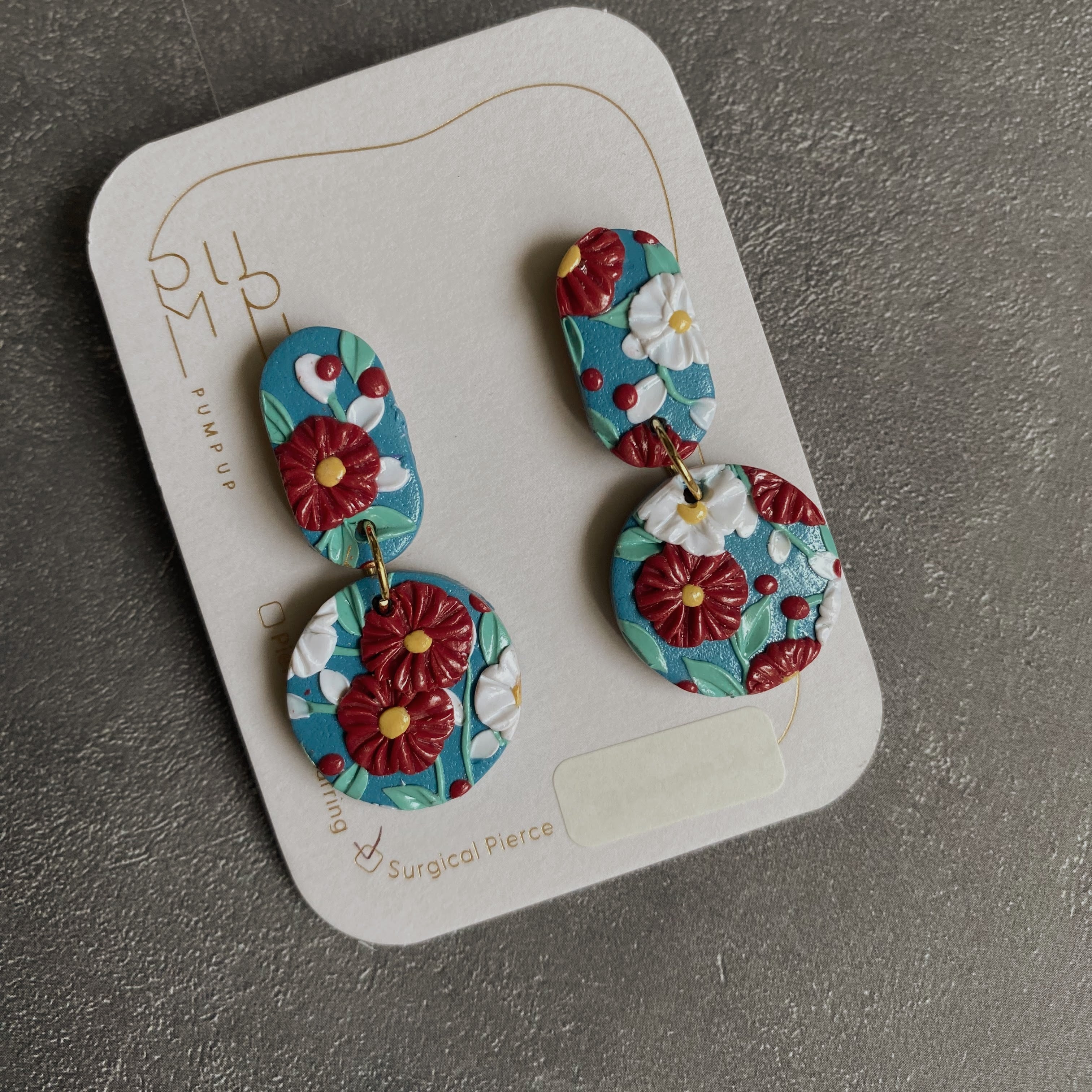 BAKE小楕円×丸サージカルピアス(水色・ミント・赤・白