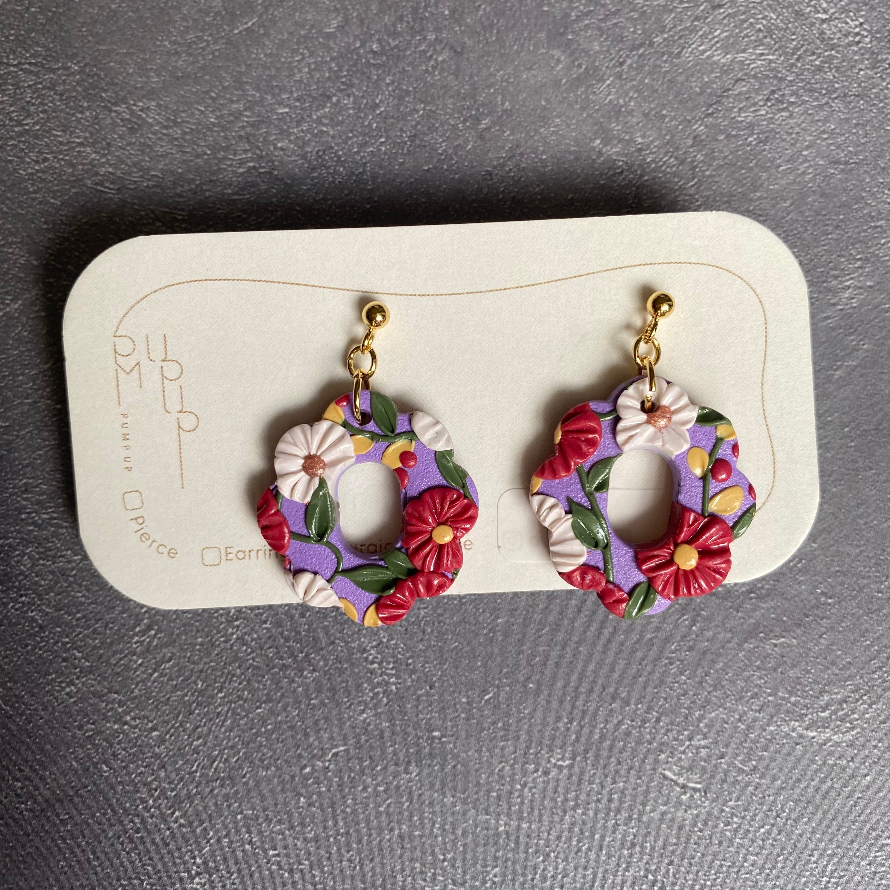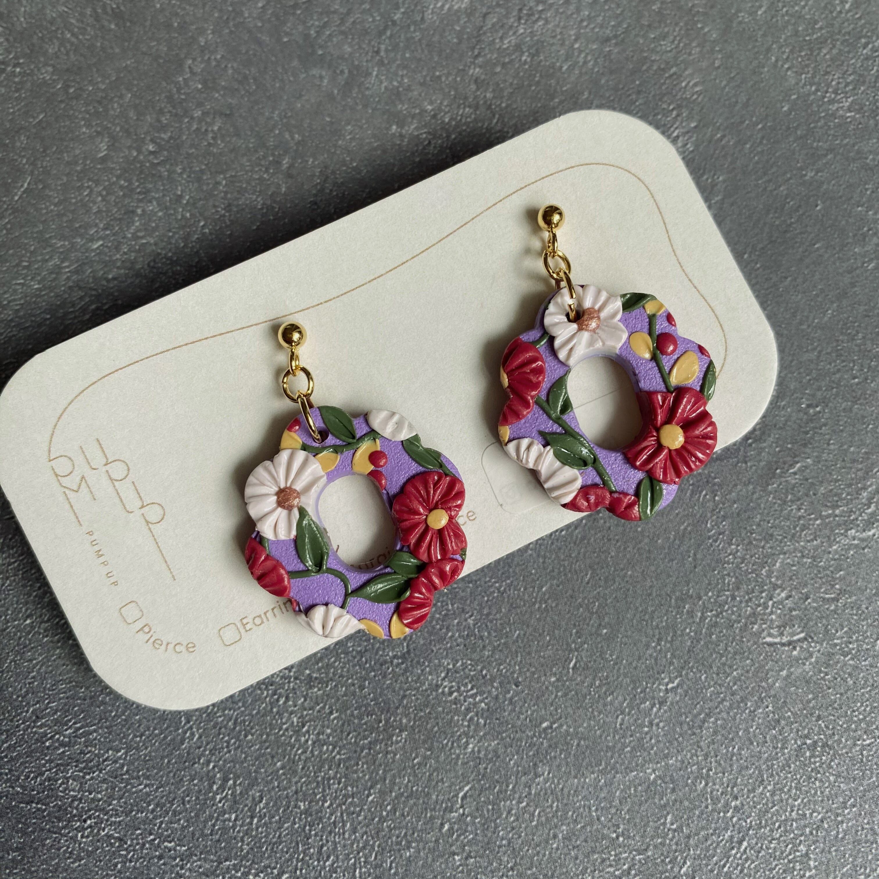 BAKE空洞花形 ピアス/イヤリング(紫・緑・赤・白・黄色