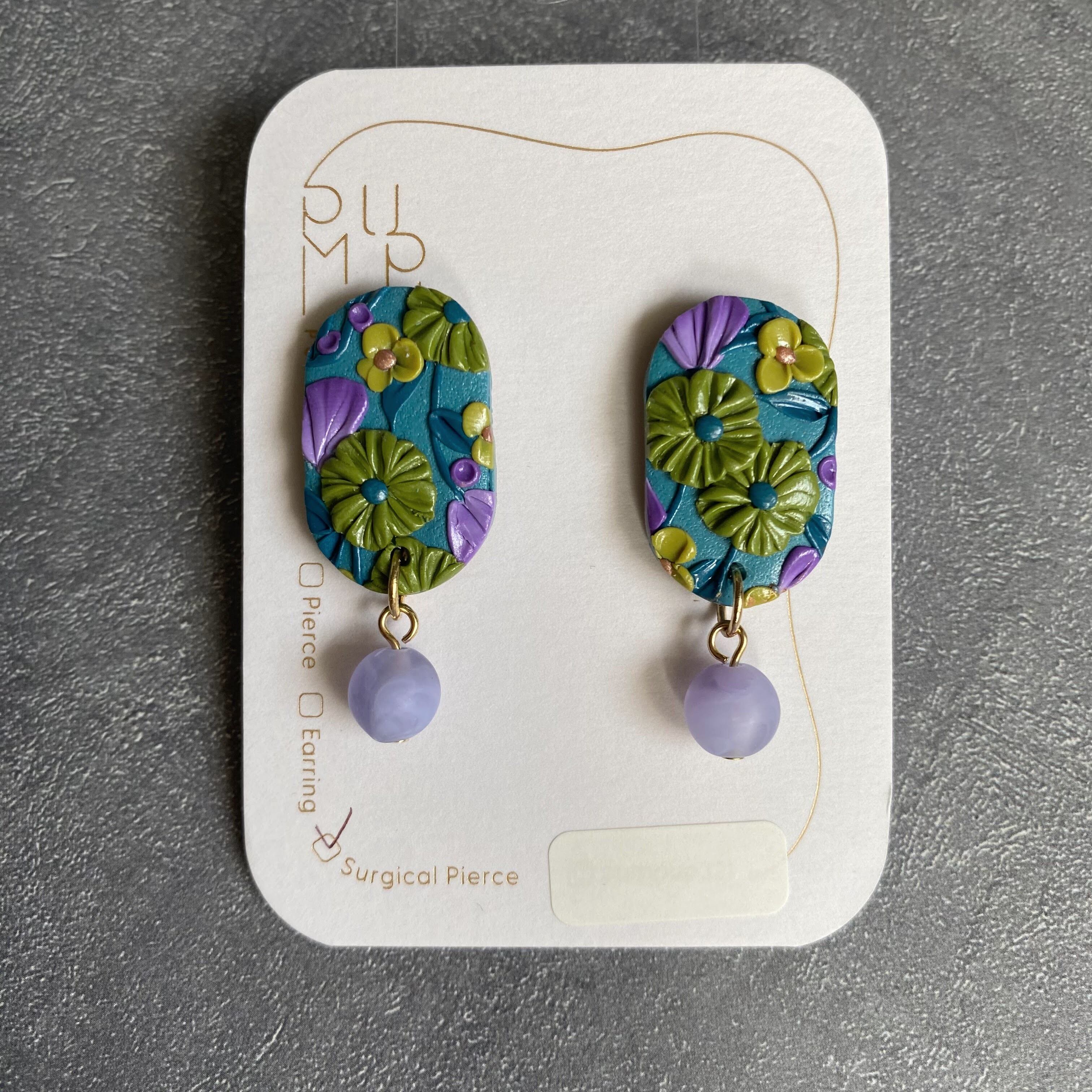 BAKE楕円×ビーズ サージカルピアス(ブルー・緑・紫