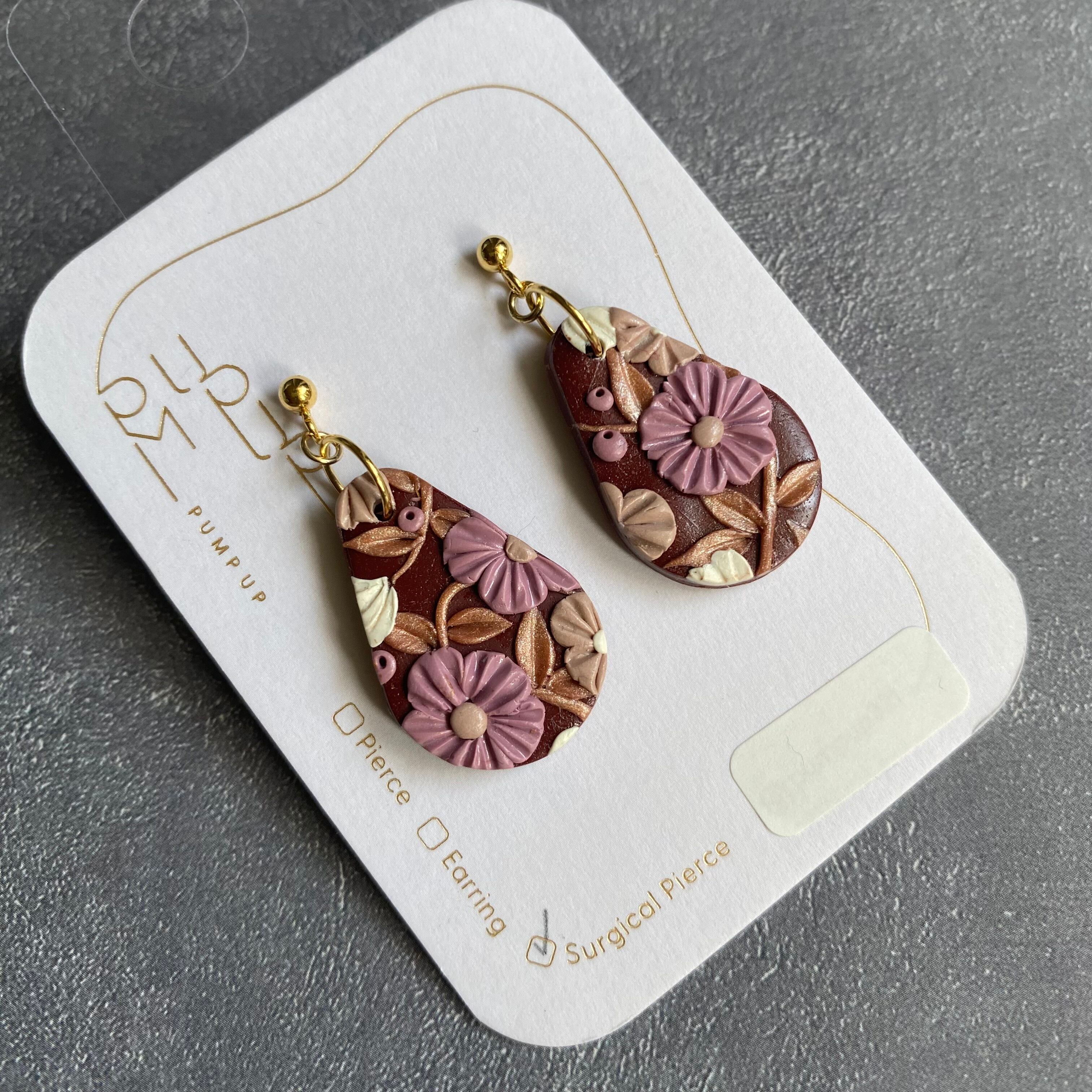 BAKE雫中 ピアス/イヤリング(茶色・ゴールド・ピンク・オフホワイト