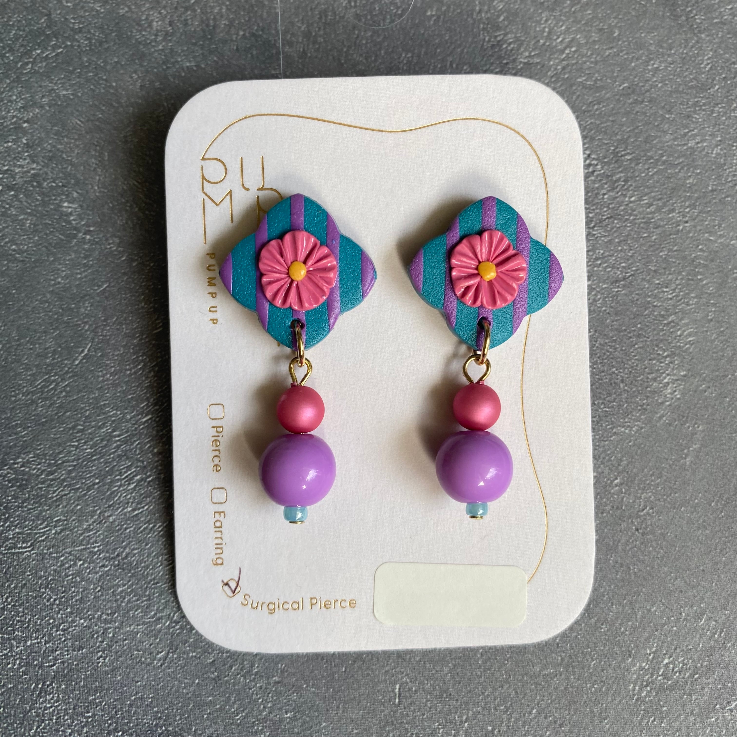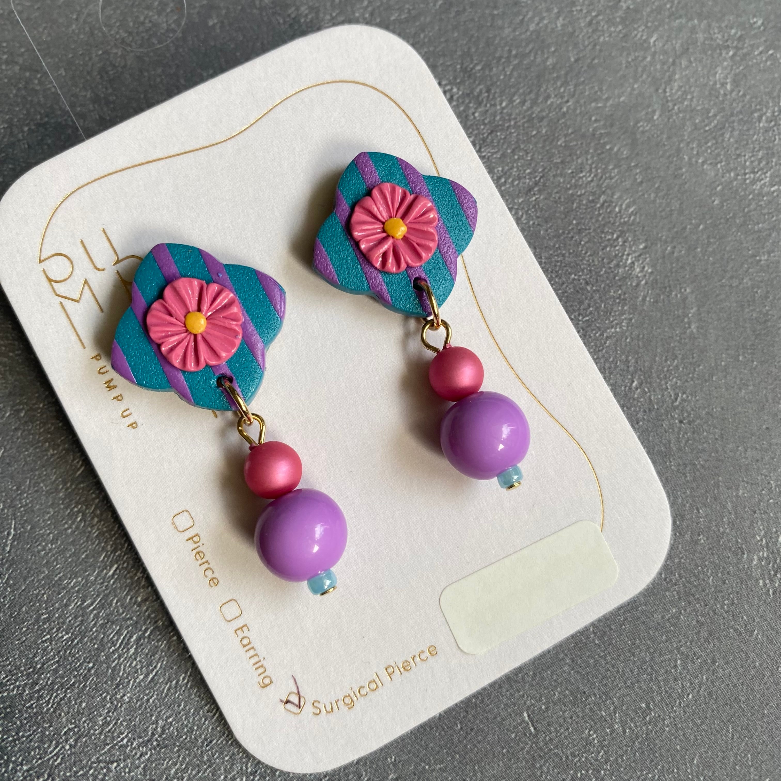 BAKE4枚花型 サージカルピアス(ストライプ ブルー・紫・ピンク