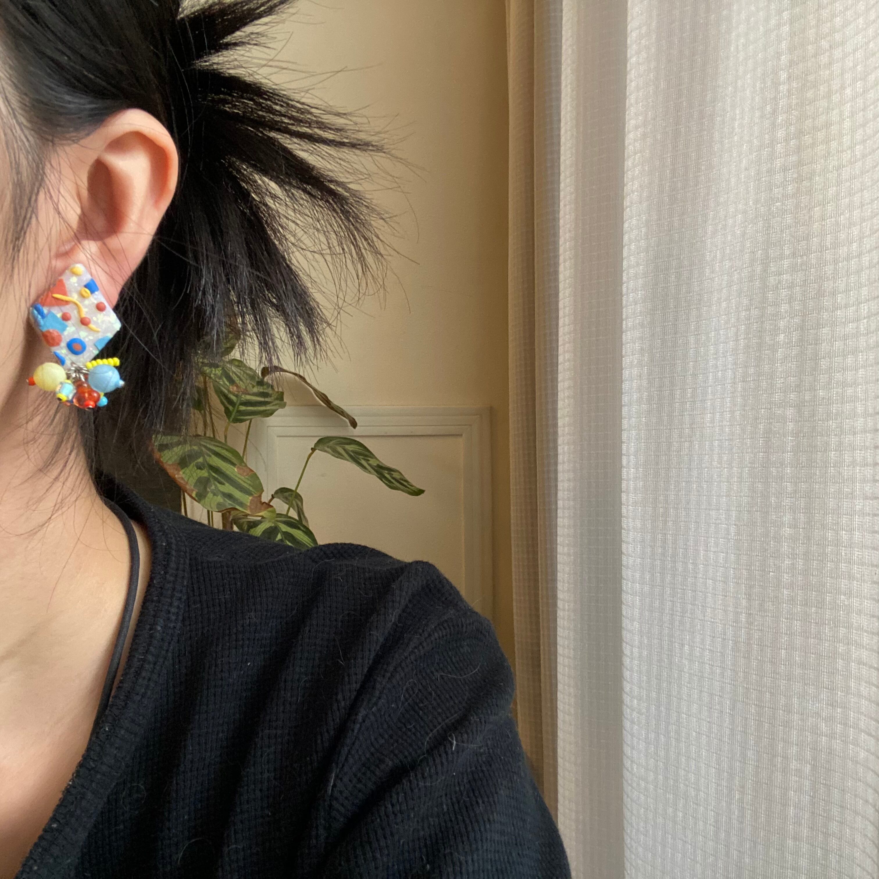 ※ハンドメイドのクレイアクセサリーとなります。パーツが左右で多少の違いがあったり、凹凸があったりいたしますので完璧な品をお求めな方はご購入をお控えくださいませ
