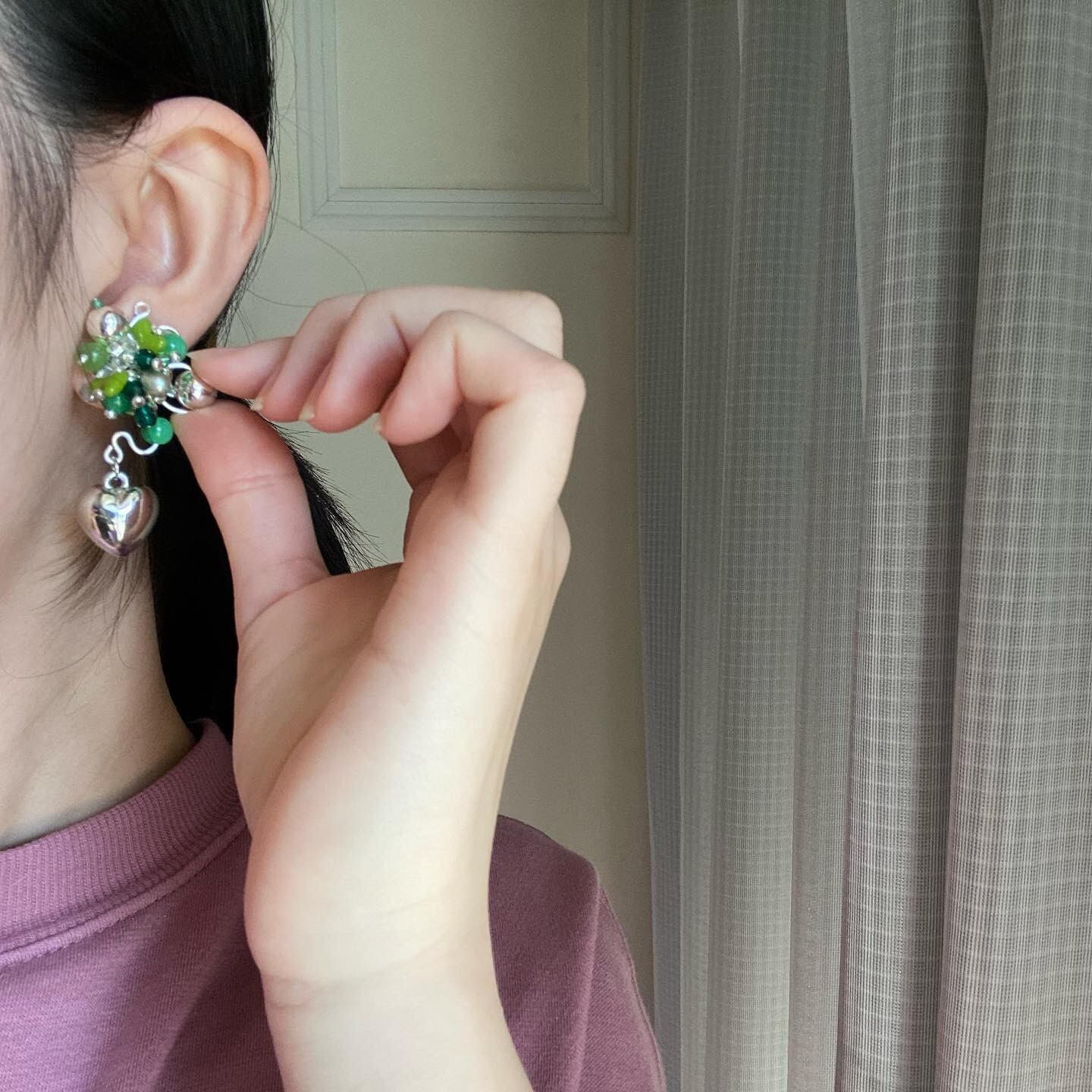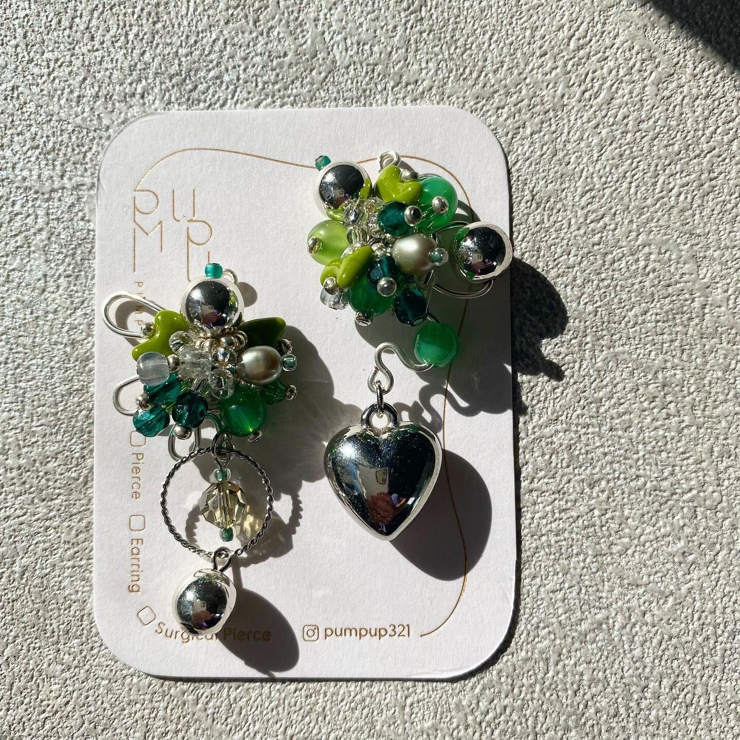 ぎっしり イヤリング(シルバーグリーン)