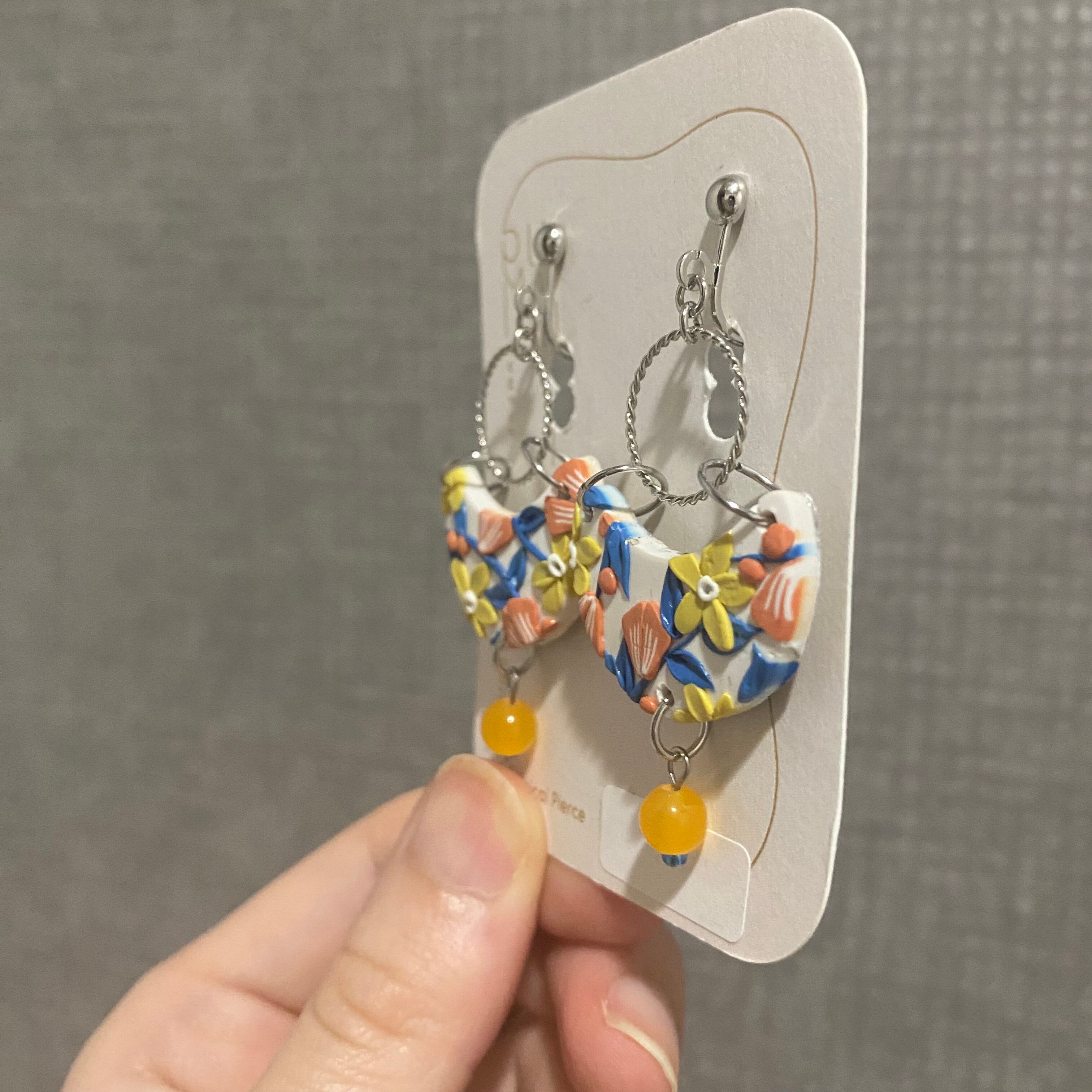 ※ハンドメイドのクレイアクセサリーとなります。パーツが左右で多少の違いがあったり、凹凸があったりいたしますので完璧な品をお求めな方はご購入をお控えくださいませ